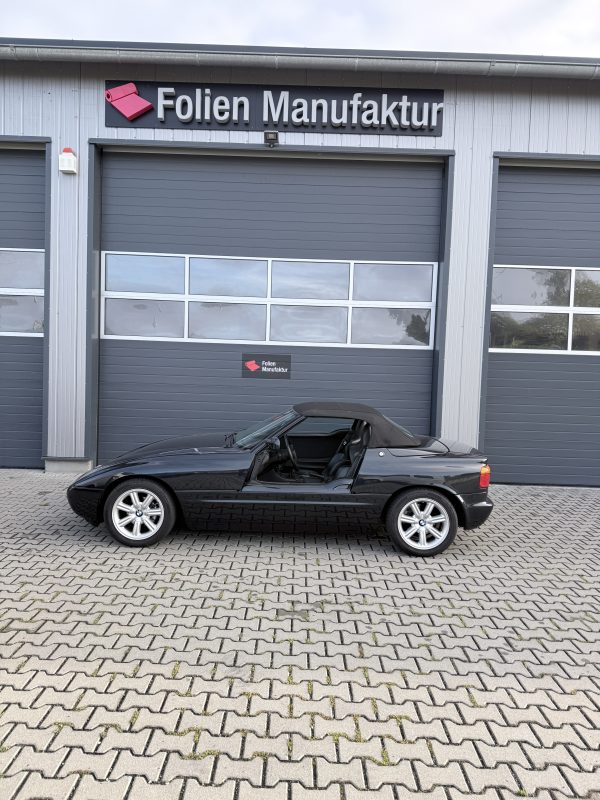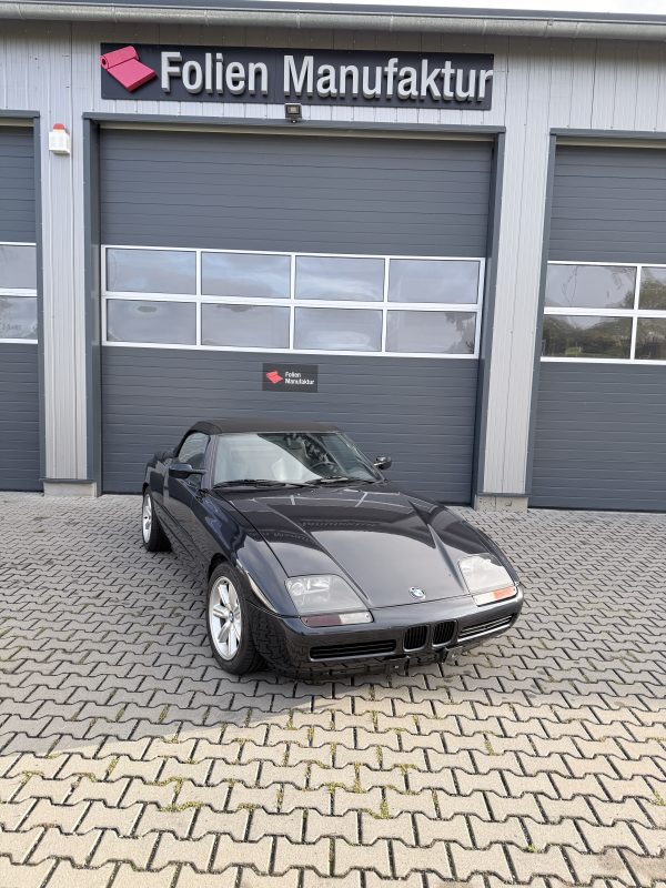 Dieser seltene Roadster hat von uns ein Frontpaket aus hochwertiger Lackschutzfolie (PPF) erhalten. Damit sind die empfindlichsten Bereiche wie Frontstoßstange, Haube, Kotflügel und Spiegel unsichtbar geschützt – und der Z1 bleibt so außergewöhnlich wie am ersten Tag.