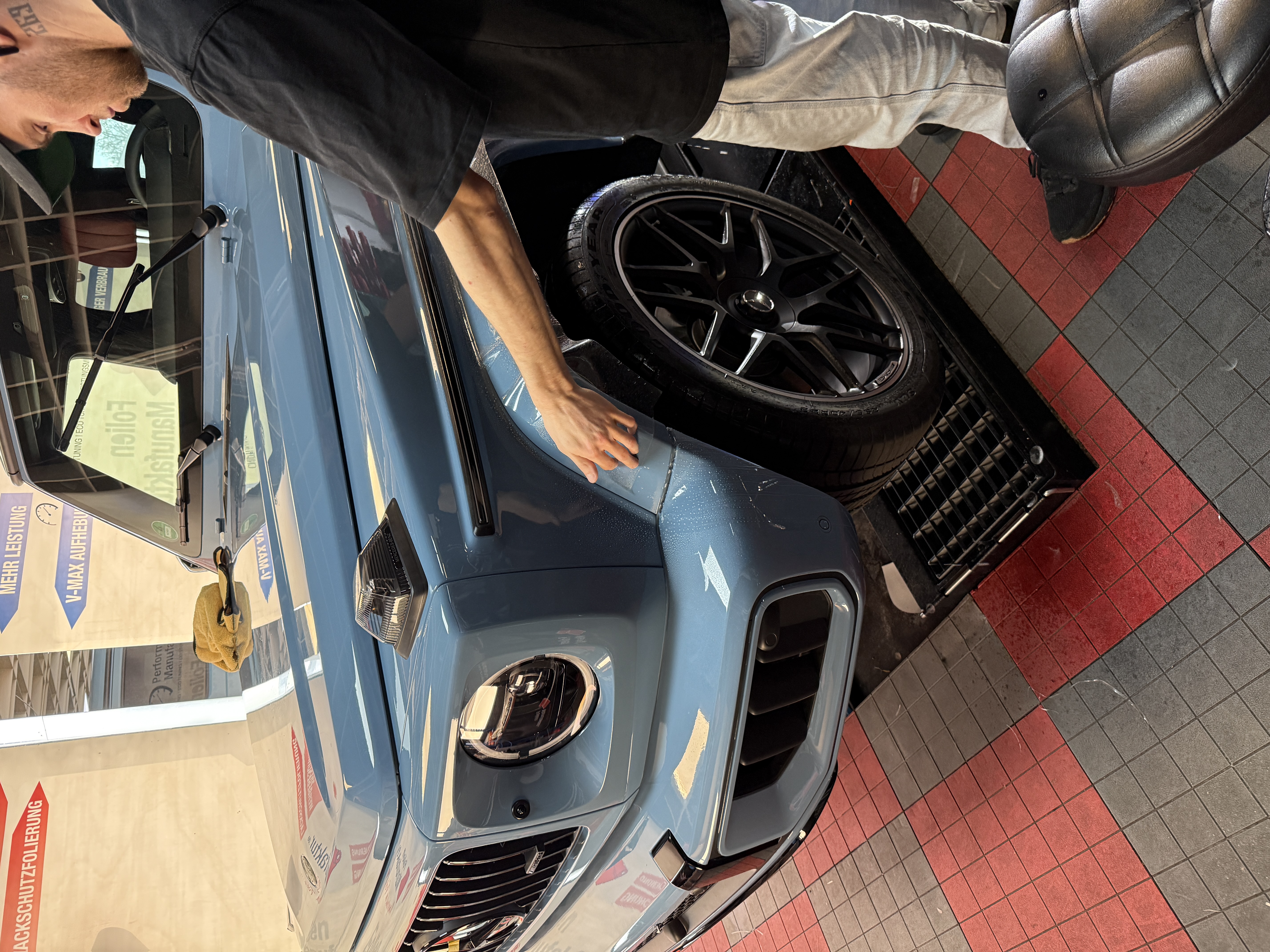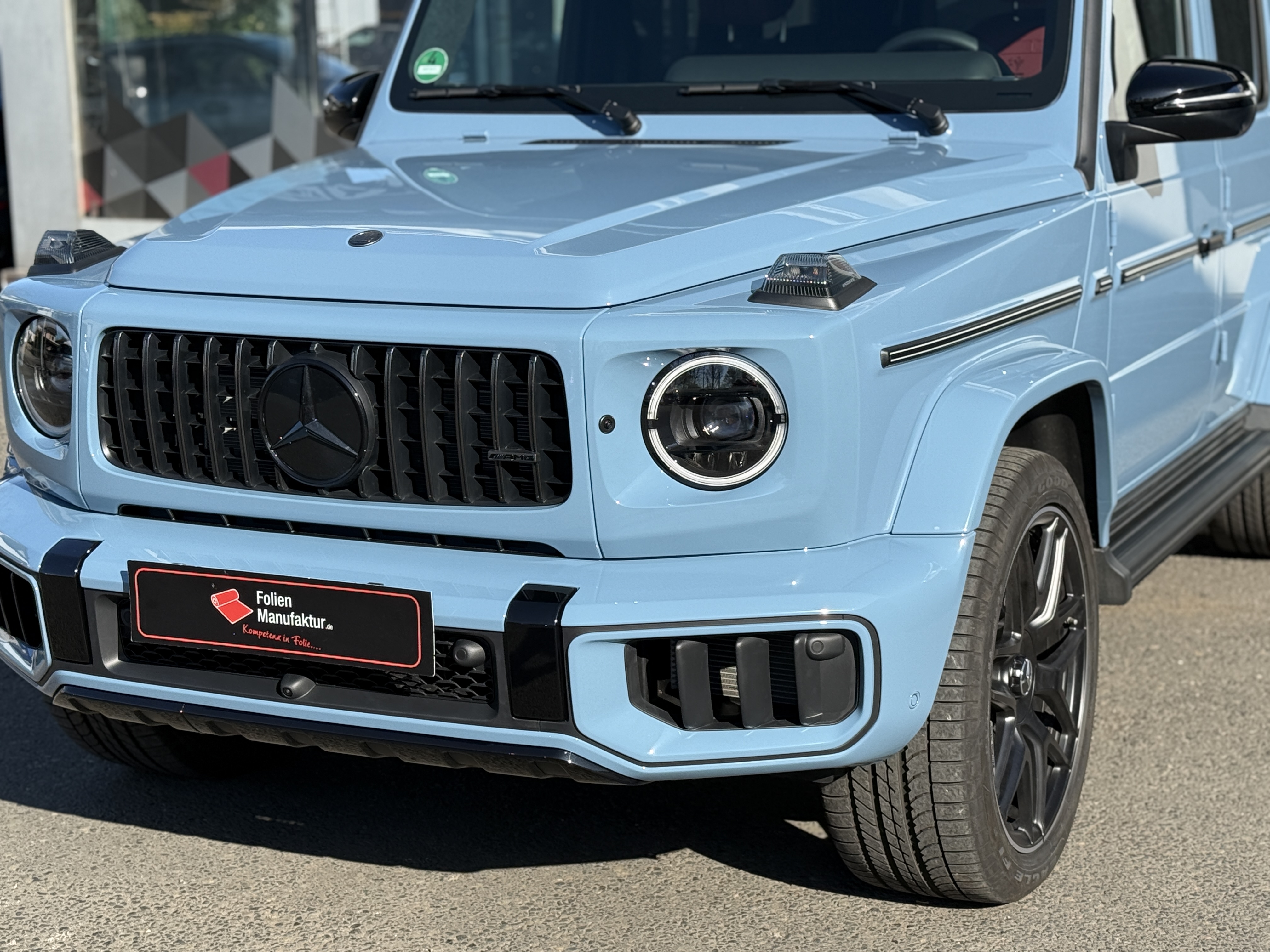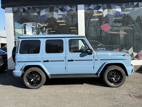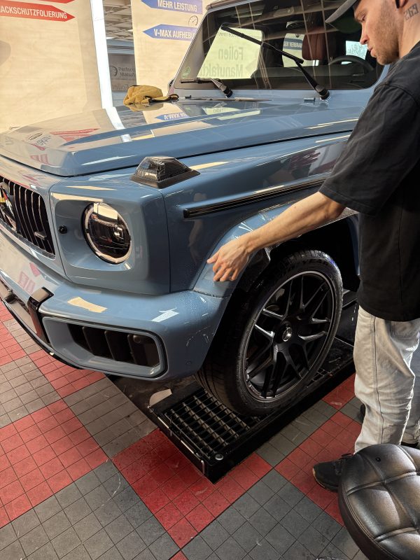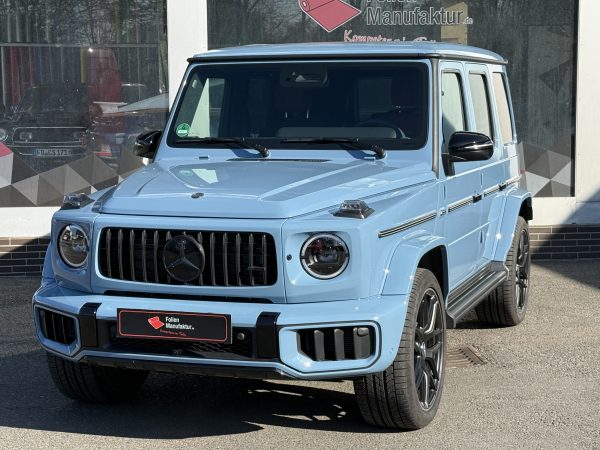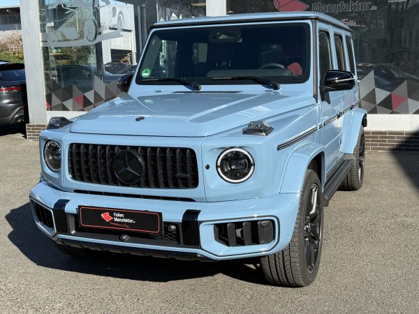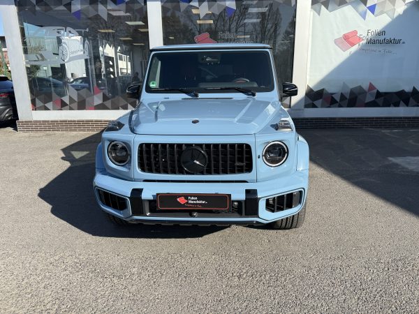 2) **Kurz zur Folierung/PPF** Für dieses Projekt setzen wir auf hochwertigen **Lackschutzfilm**, der den Originallack nahezu unsichtbar bewahrt und gleichzeitig genau das schützt, wofür die G‑Klasse steht: Souveränität – auf der Straße wie abseits davon.