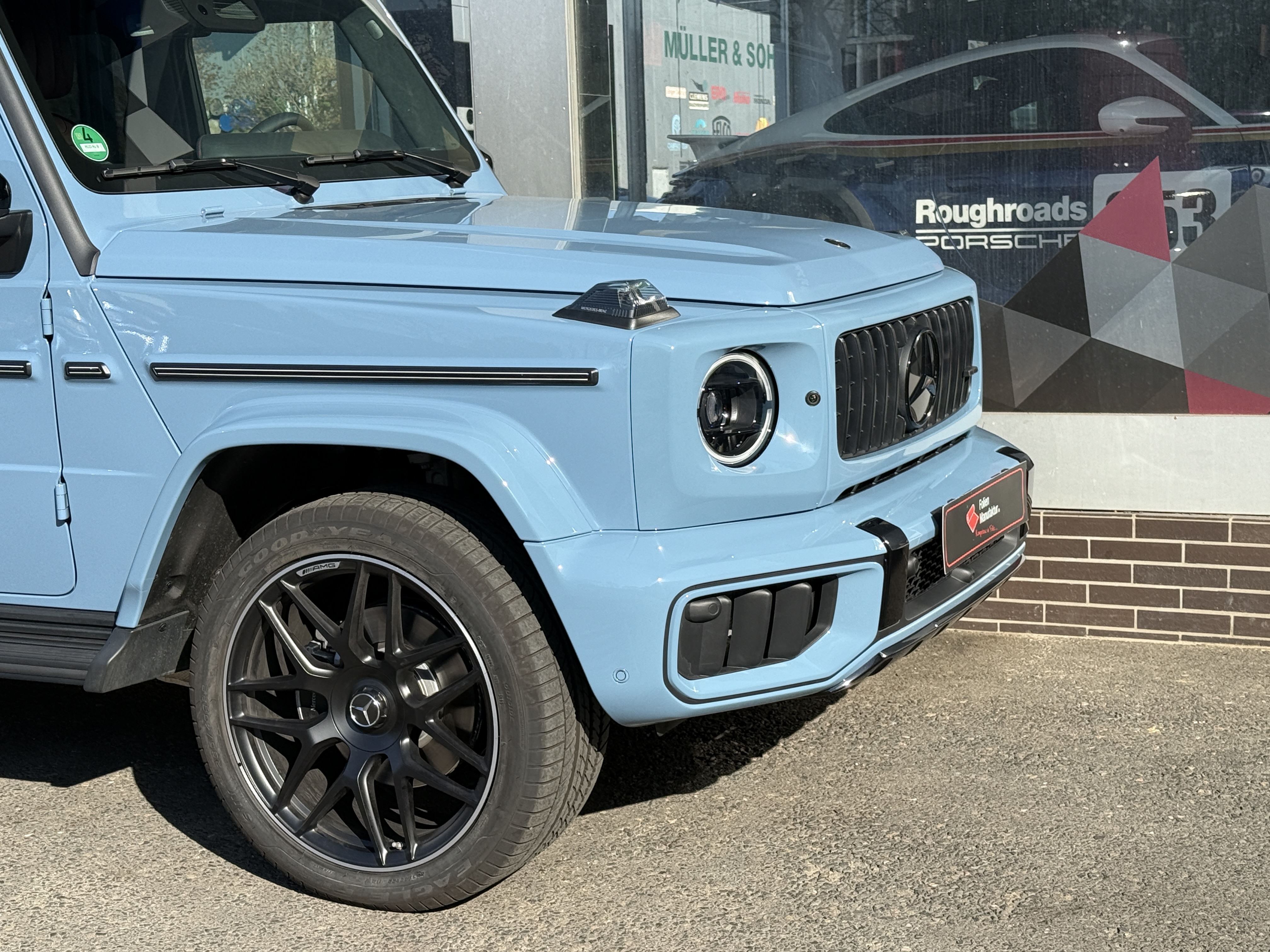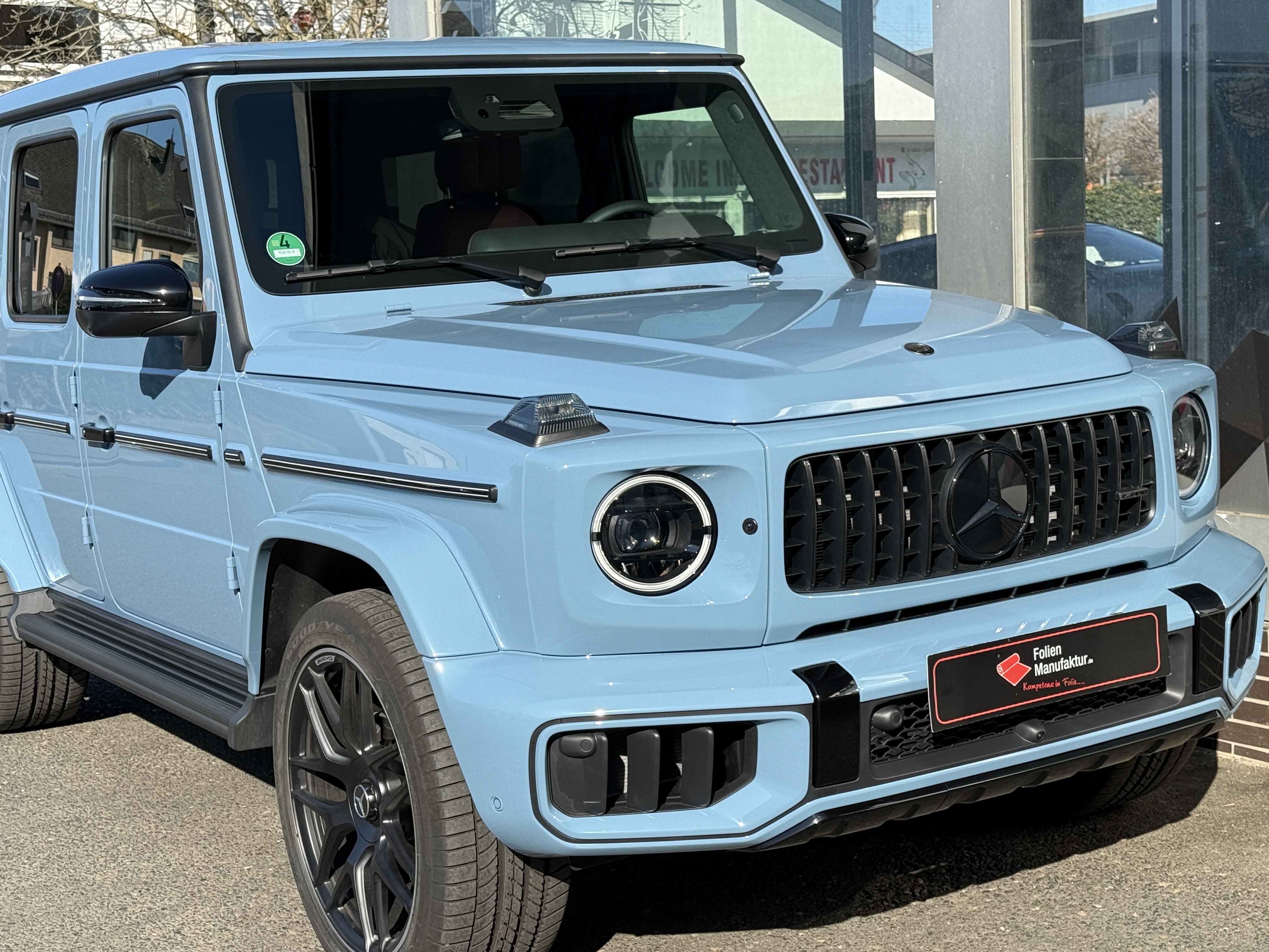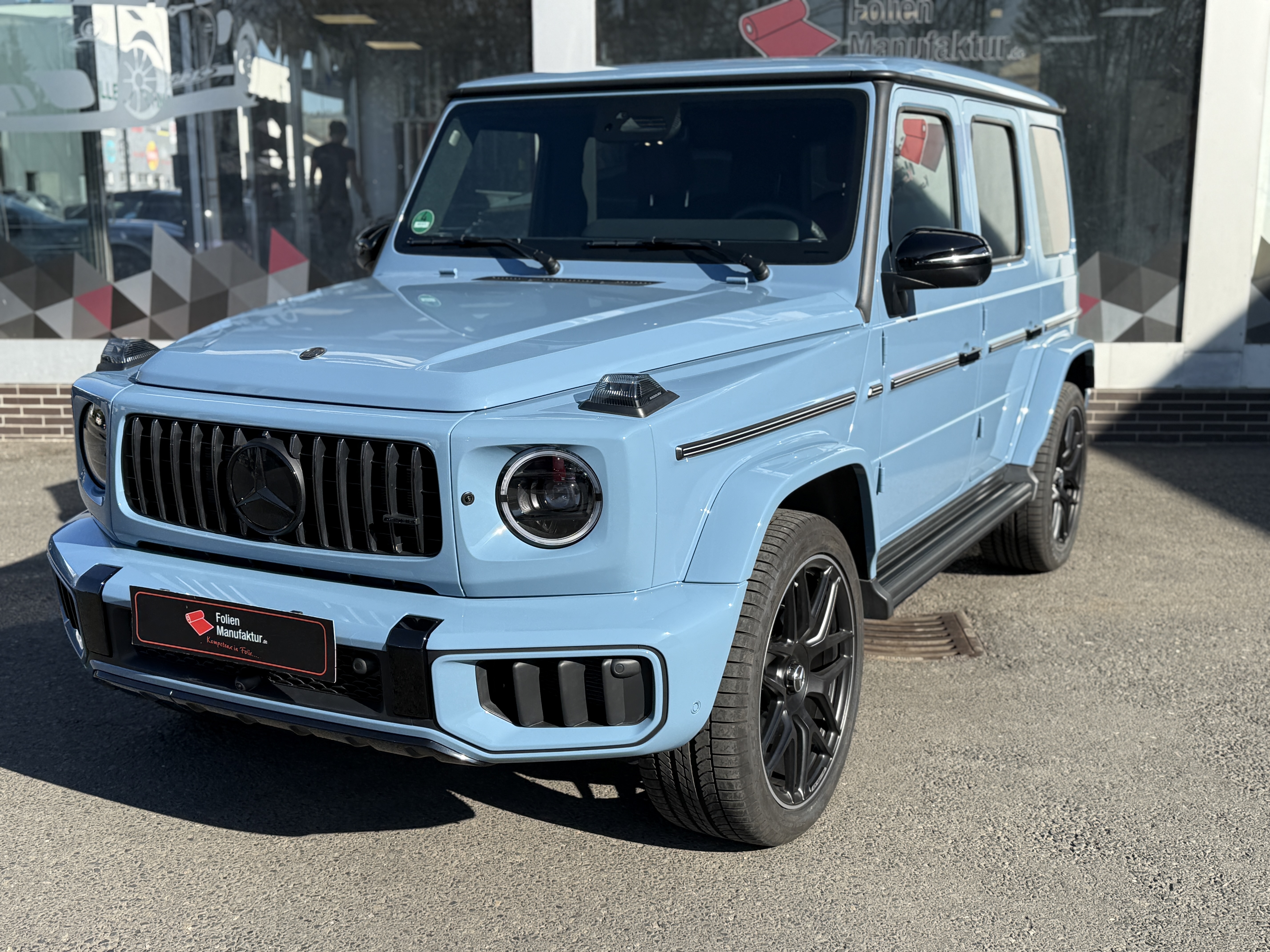 2) **Kurz zur Folierung/PPF** Für dieses Projekt setzen wir auf hochwertigen **Lackschutzfilm**, der den Originallack nahezu unsichtbar bewahrt und gleichzeitig genau das schützt, wofür die G‑Klasse steht: Souveränität – auf der Straße wie abseits davon.