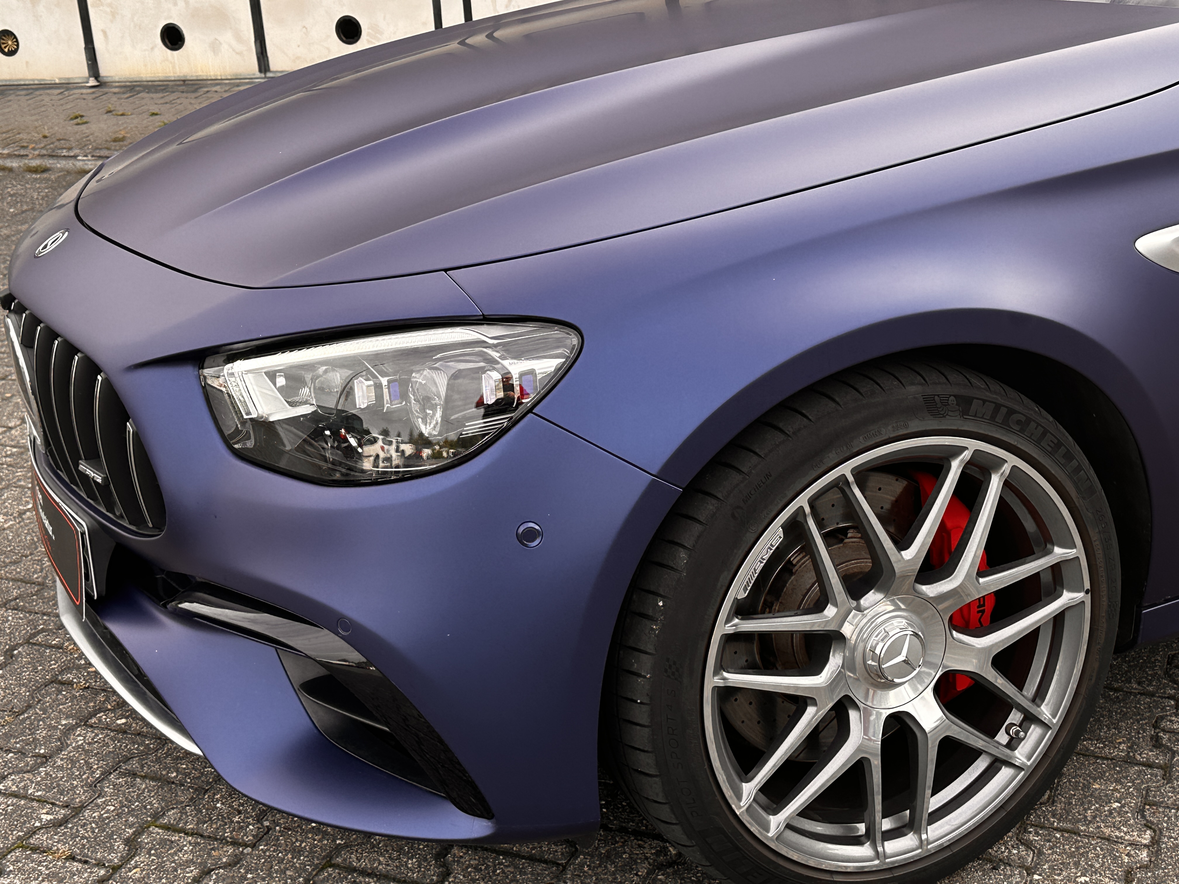 3) **Highlights der Umsetzung:** ✔️ **Hexis BodyfenceX matt** – Premium-PPF mit markantem Matt-Look ✔️ **ACHTUNG:** Bodyfence X matt **weicht stark ab** → erfordert Erfahrung & saubere Planung ✔️ **Schablonen passen nicht so gut** → mehr Handarbeit, mehr Präzision ✔️ **Keine Überlappungen** → besonders anspruchsvoll, besonders cleanes Ergebnis ✔️ **Schutz vor Steinschlägen, Mikrokratzern & Witterung** bei gleichzeitig edlem Finish ✔️ **Perfekte Linienführung** für einen stimmigen AMG-Auftritt