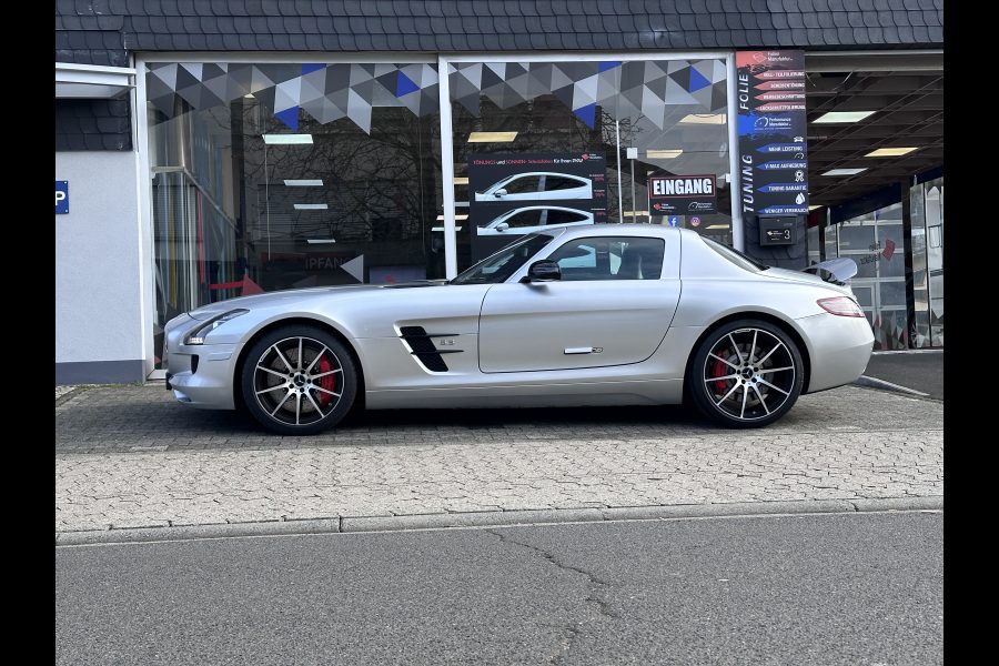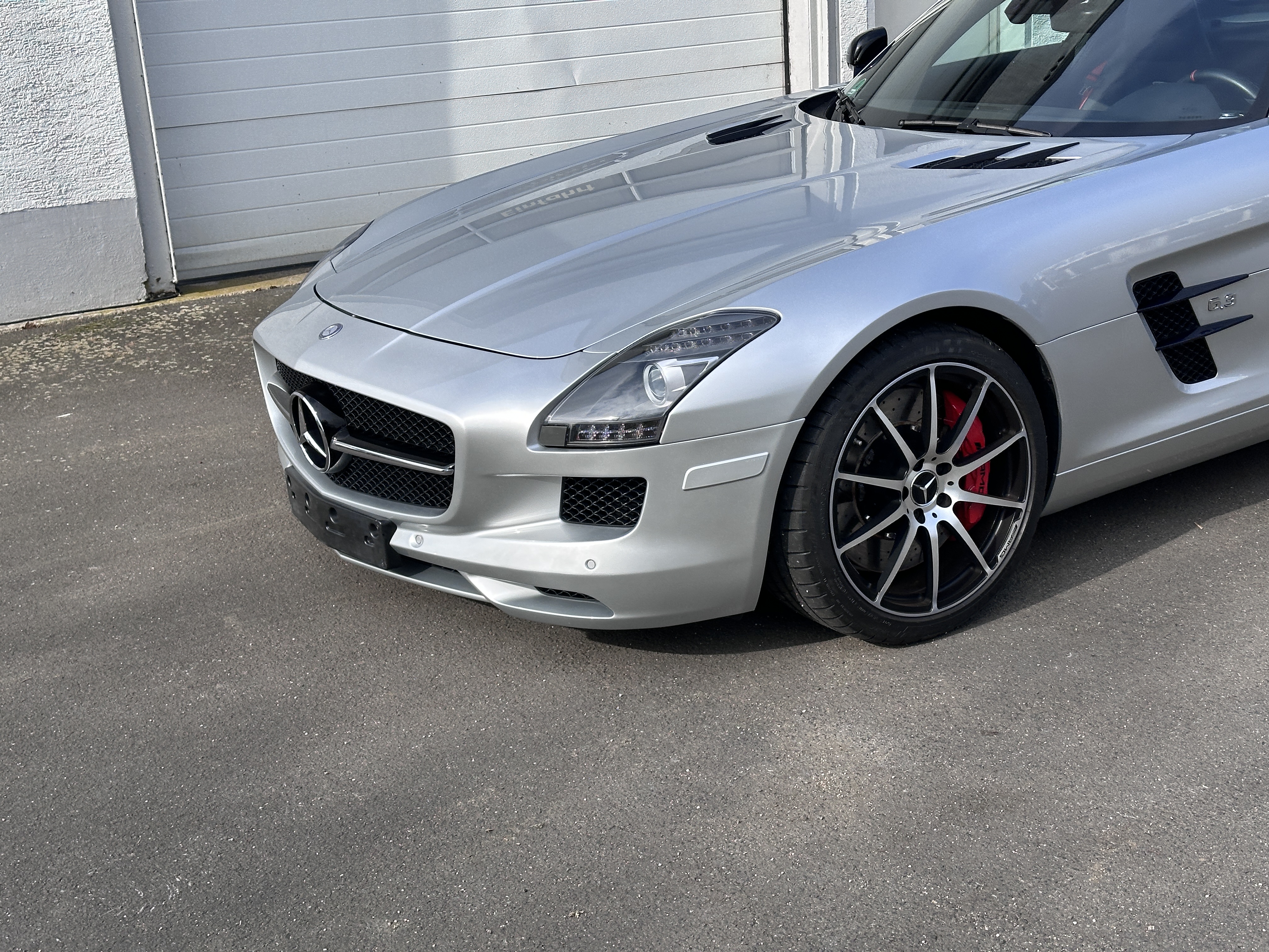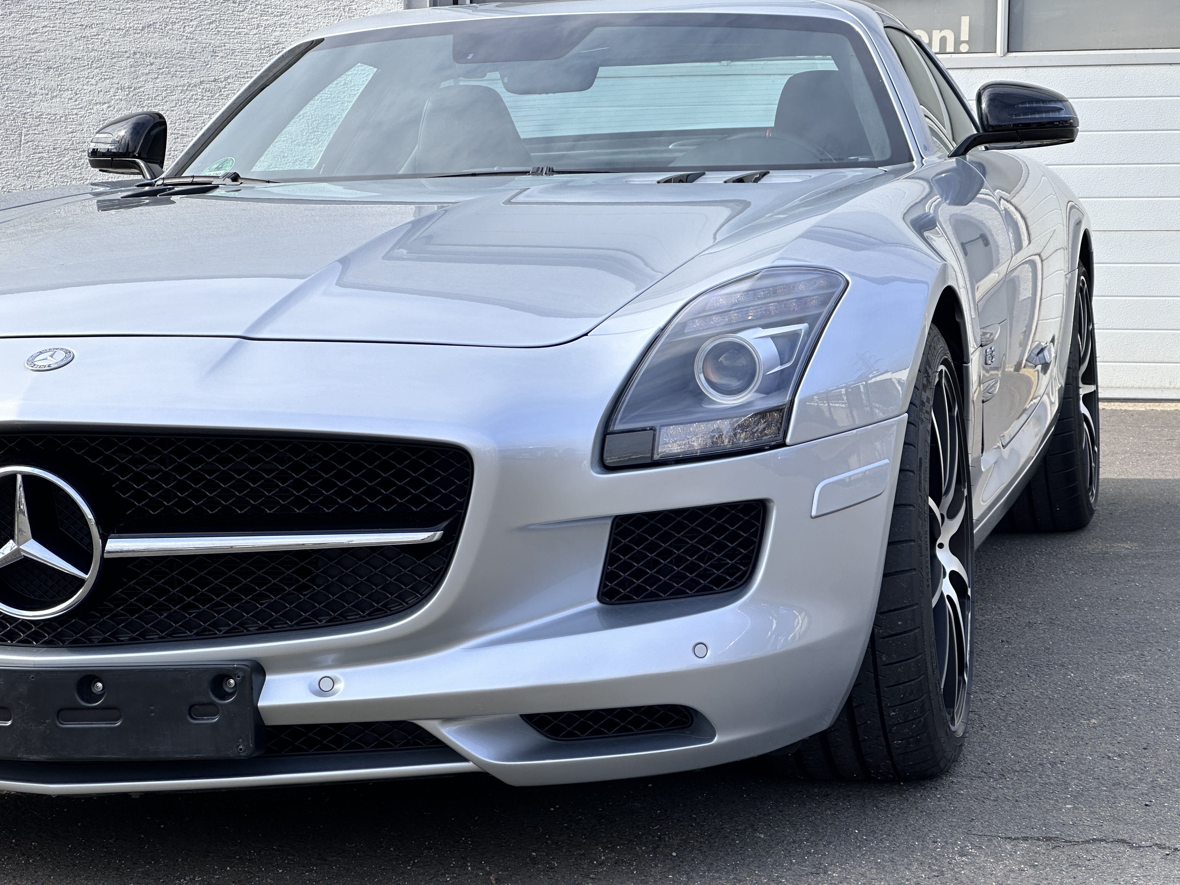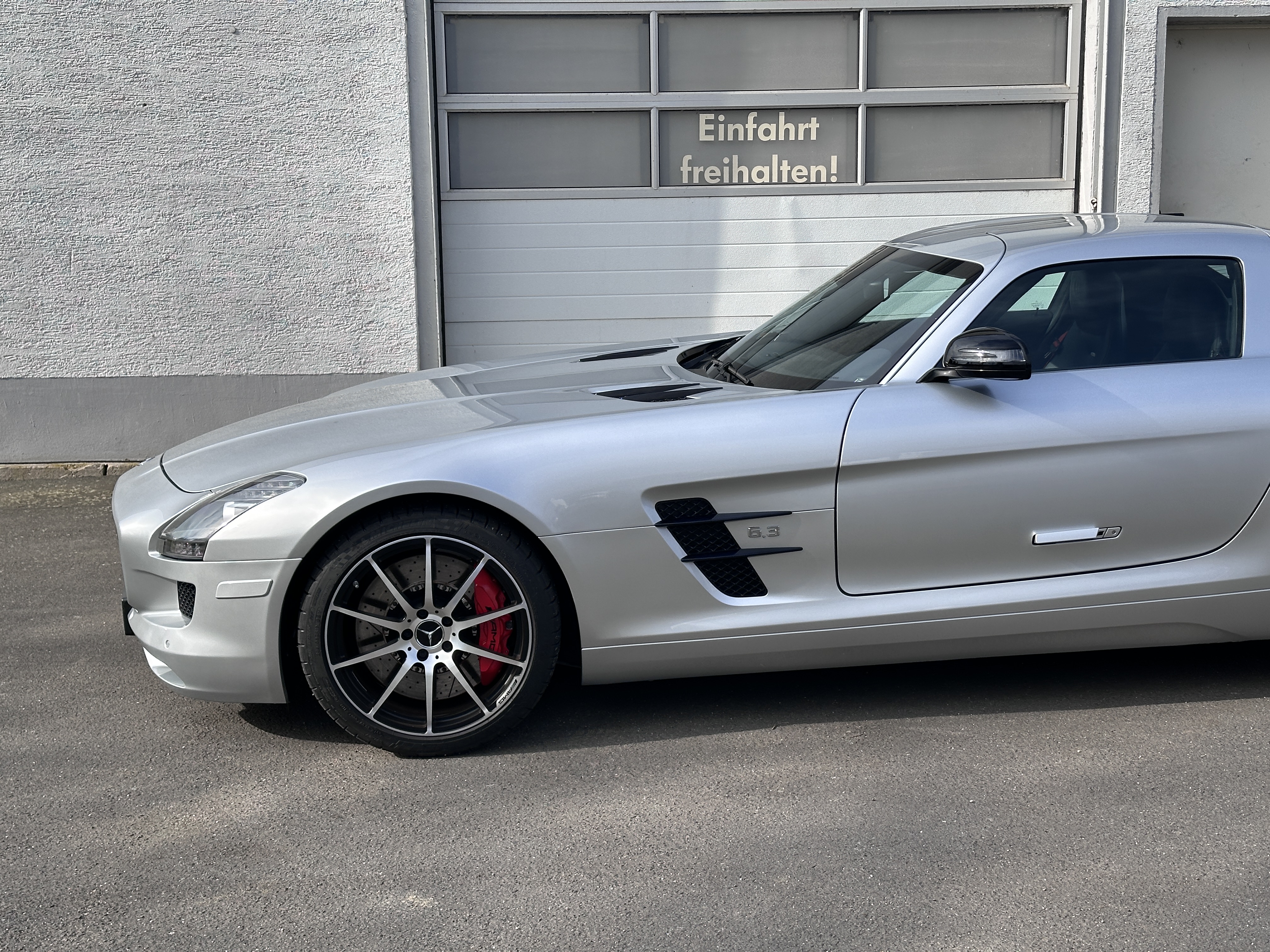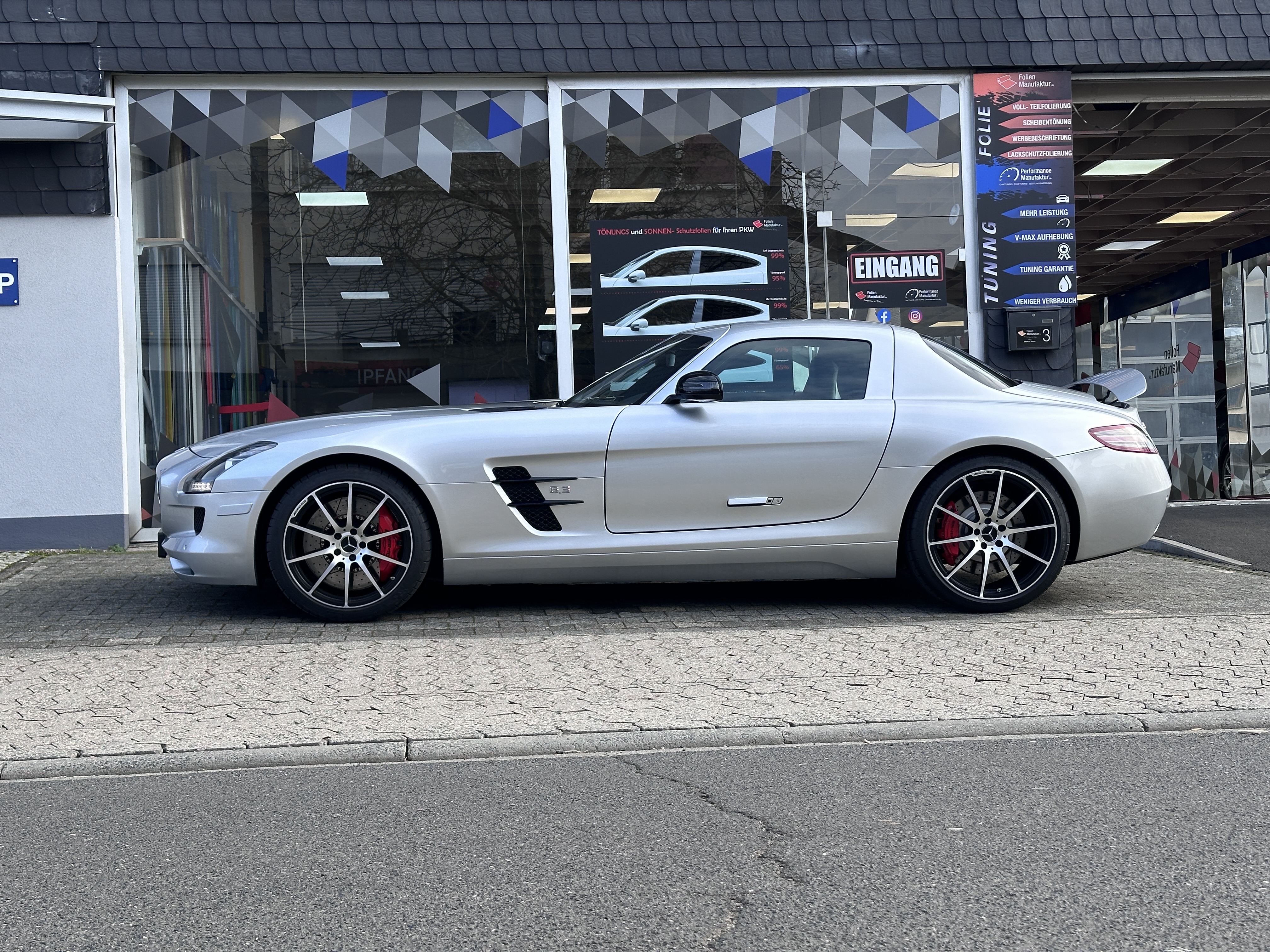 Für dieses Fahrzeug wurde eine transparente Lackschutzfolie (PPF) appliziert – nahezu unsichtbar, aber maximal effektiv. Sie bewahrt den Original-Lack vor Steinschlägen, Kratzern und Alltagsspuren, ohne die Linien und die Präsenz des SLS zu verändern. 🚀