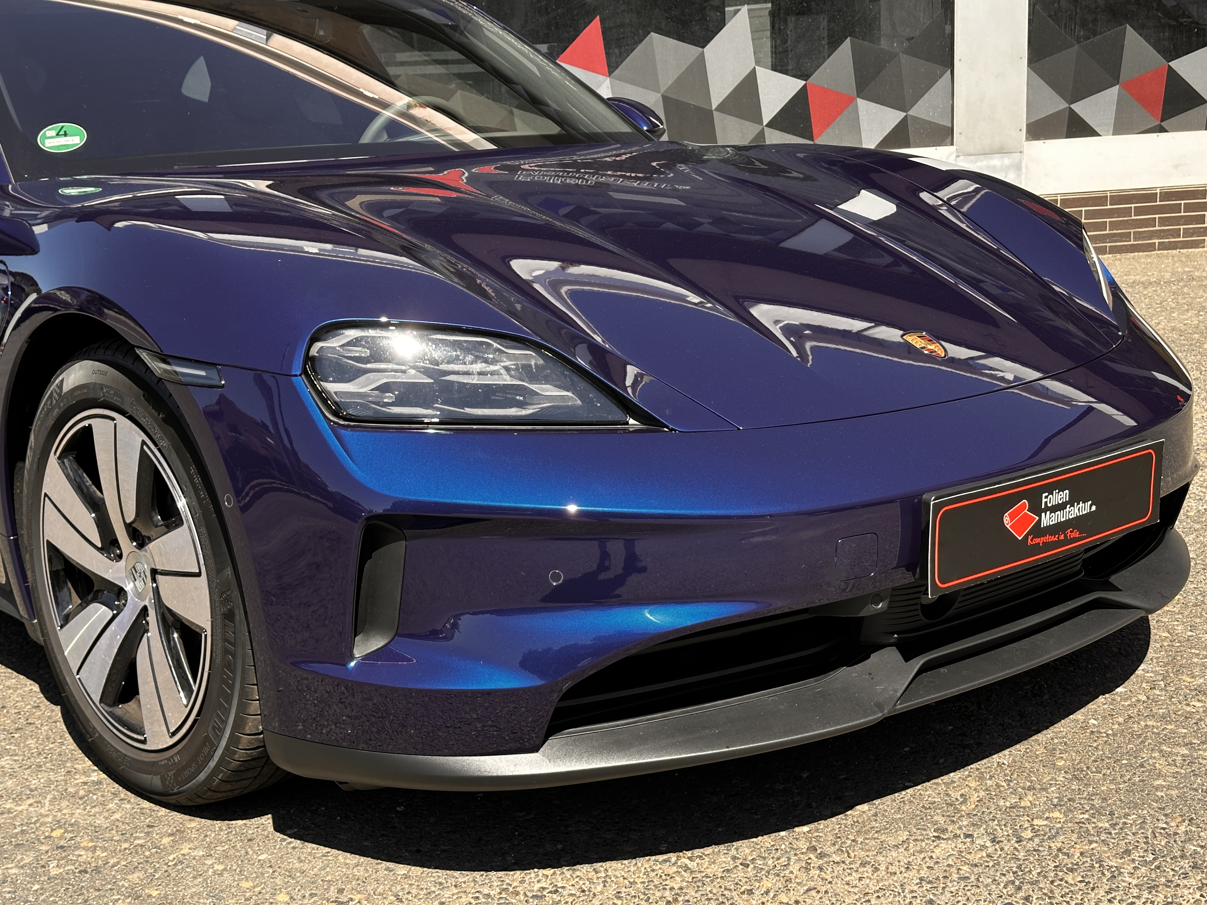 Für diesen Porsche Taycan stand der Erhalt des makellosen Originallacks im Fokus. Um die eleganten Linien und die brillante Lackwirkung dauerhaft zu bewahren, wurde eine hochwertige Lackschutzfolie (PPF) im glanz Finish umgesetzt. So bleibt der Auftritt des Fahrzeugs auch im Alltag konstant hochwertig.