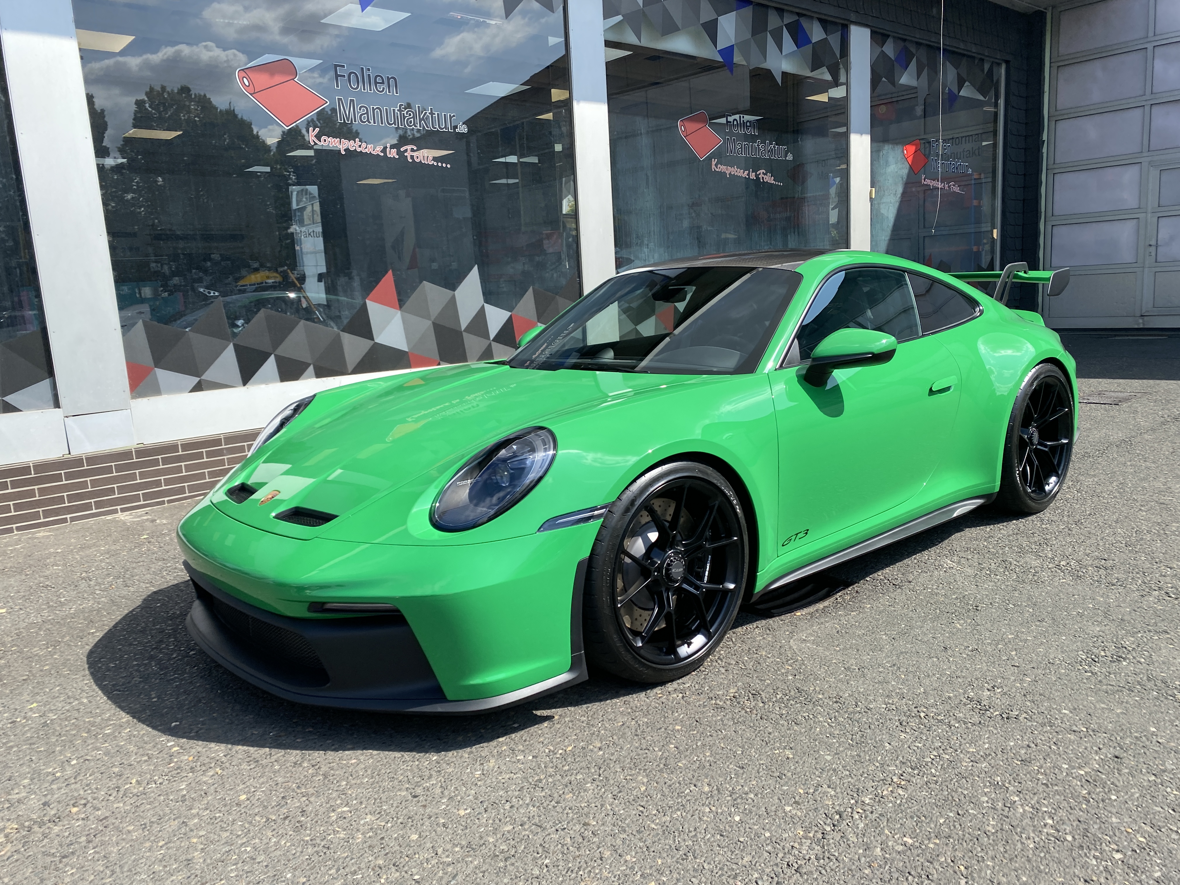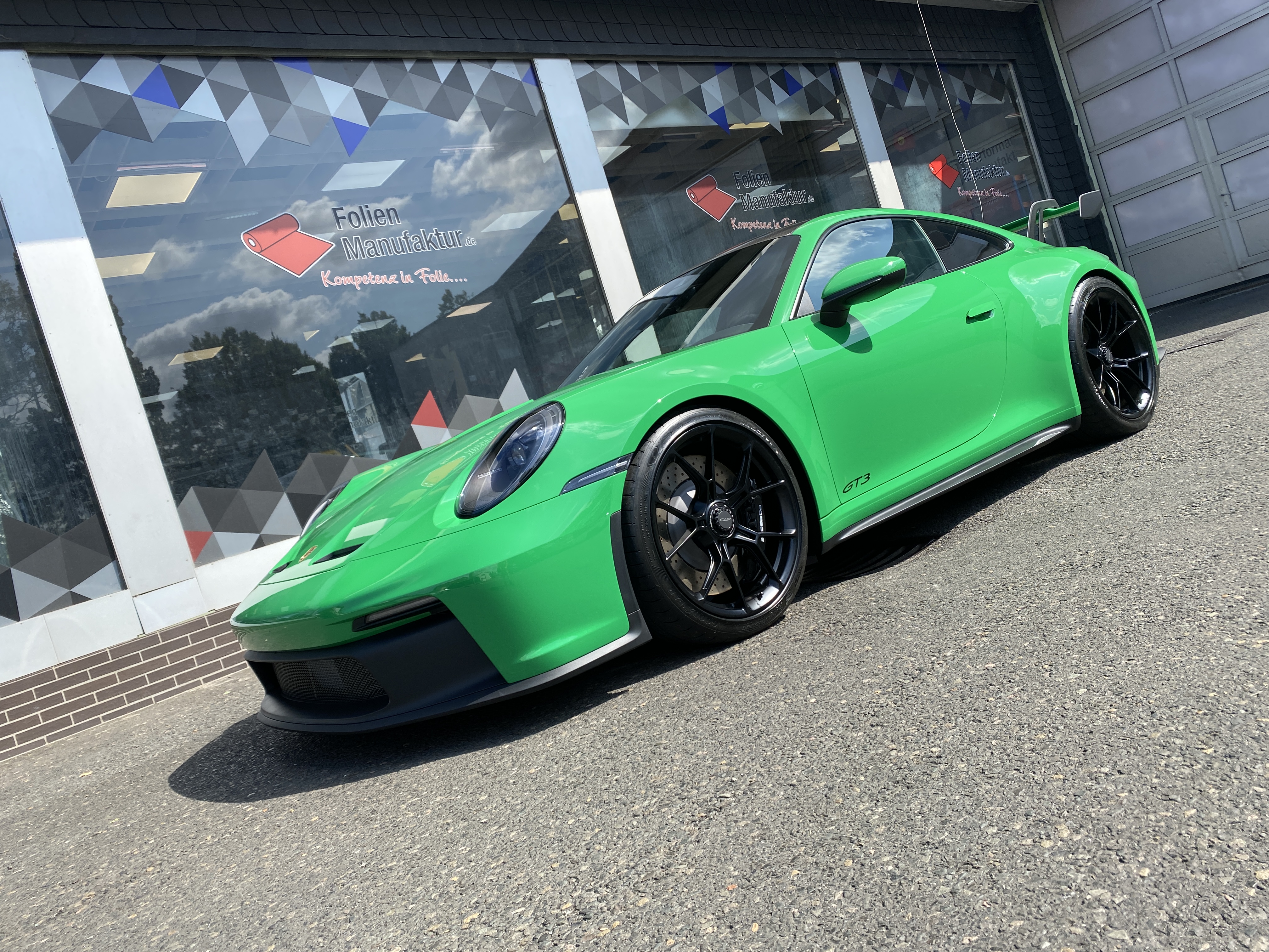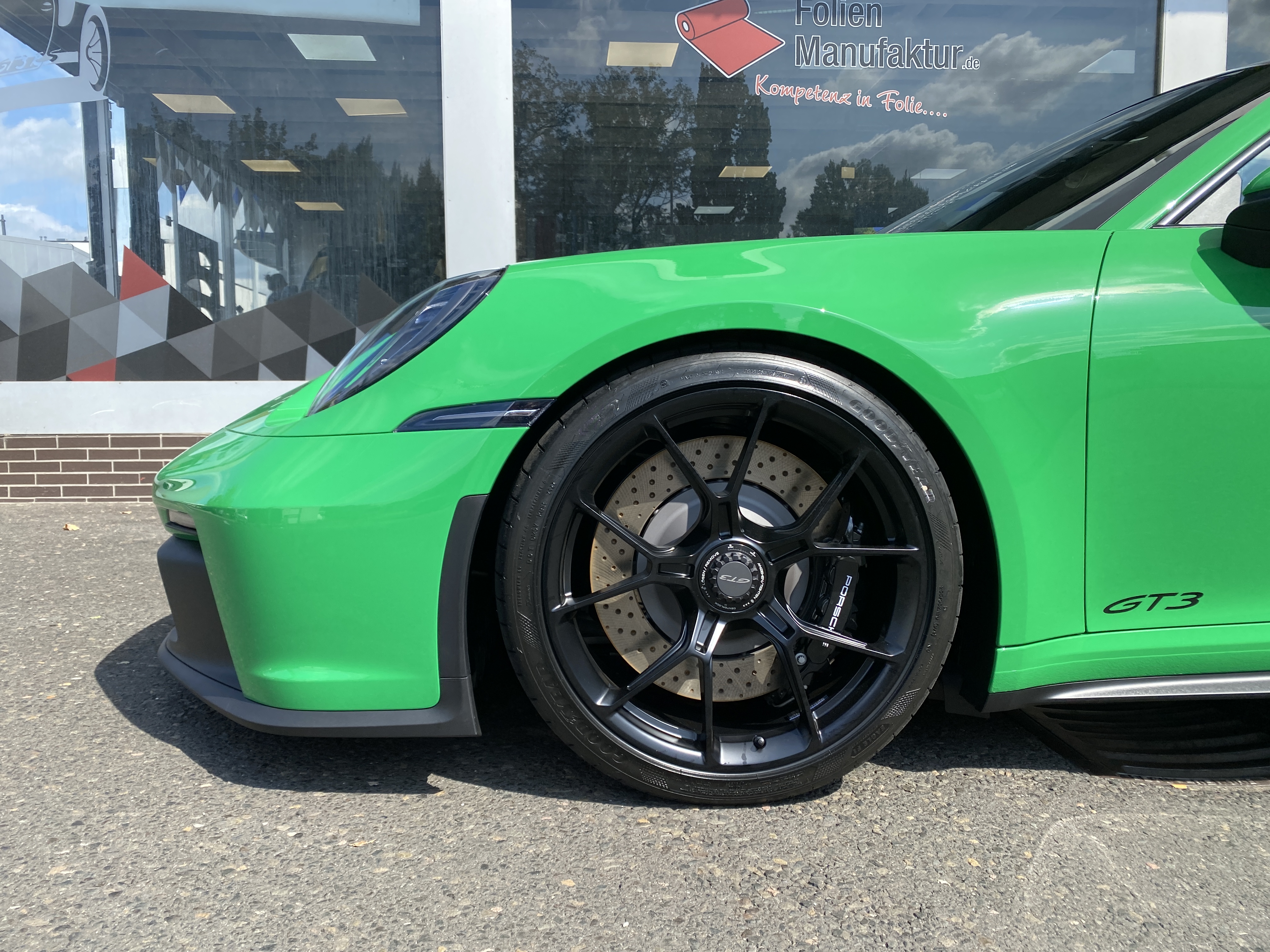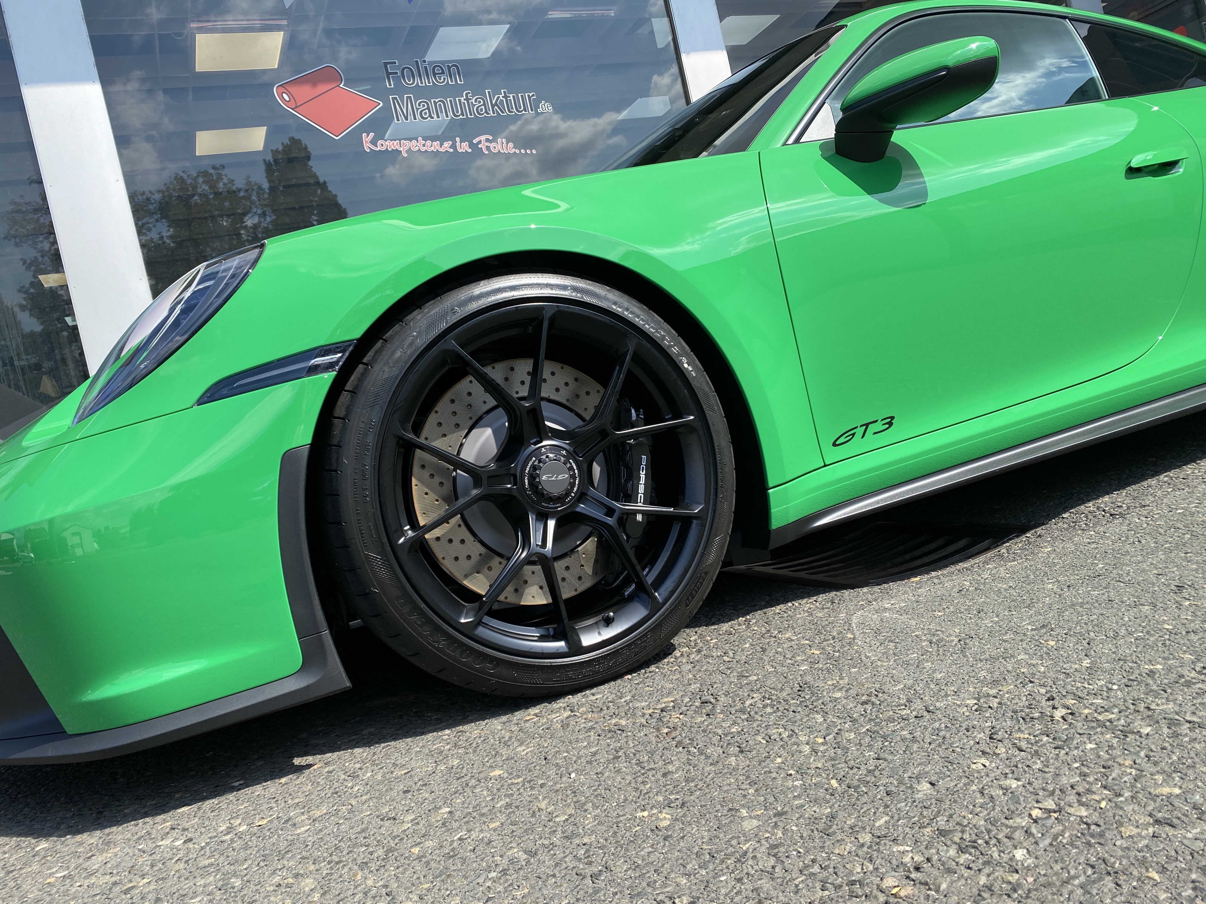 Porsche 911 992 GT3 – Lackschutzfolie in Glanz auf grünem Lack