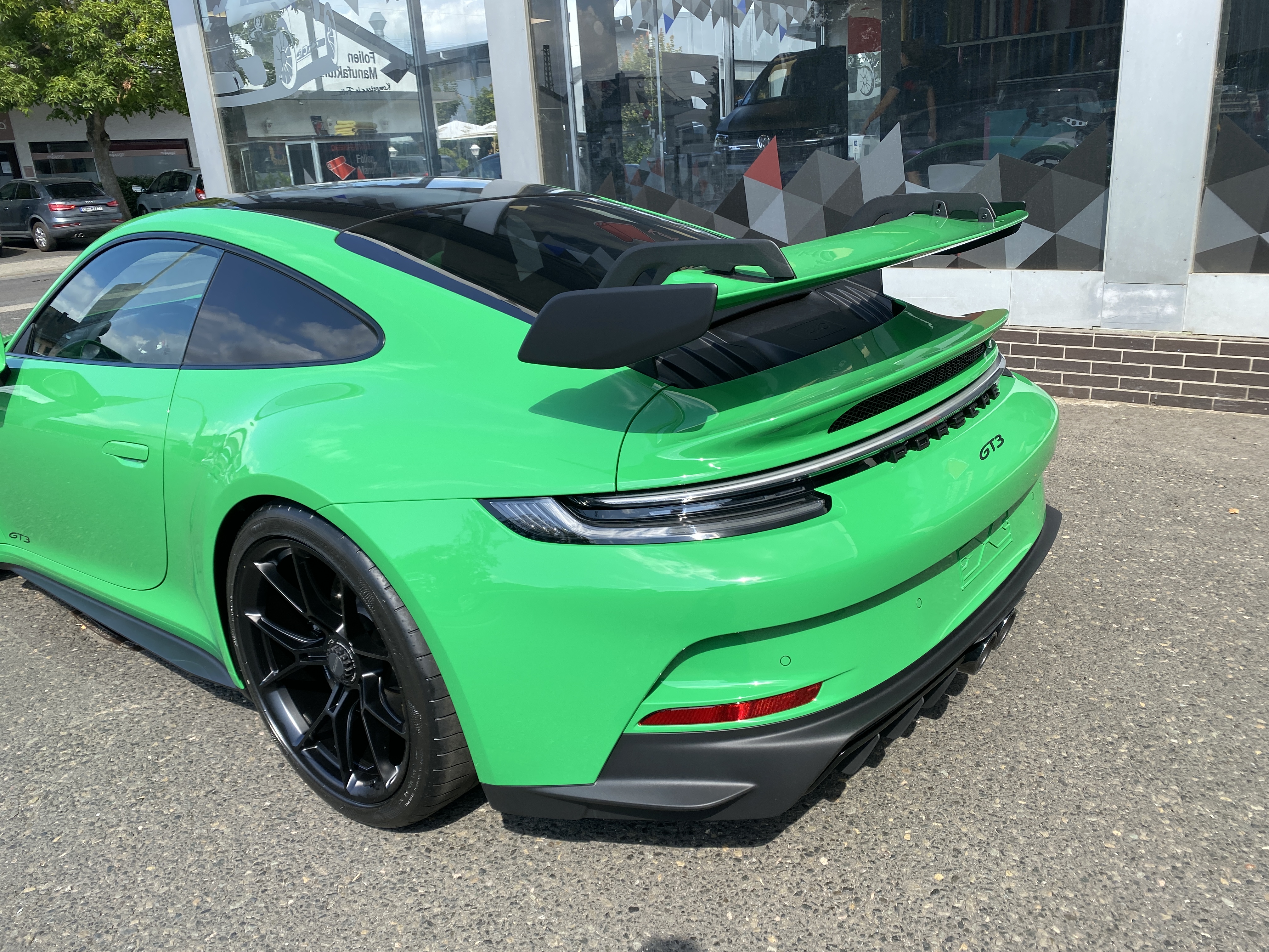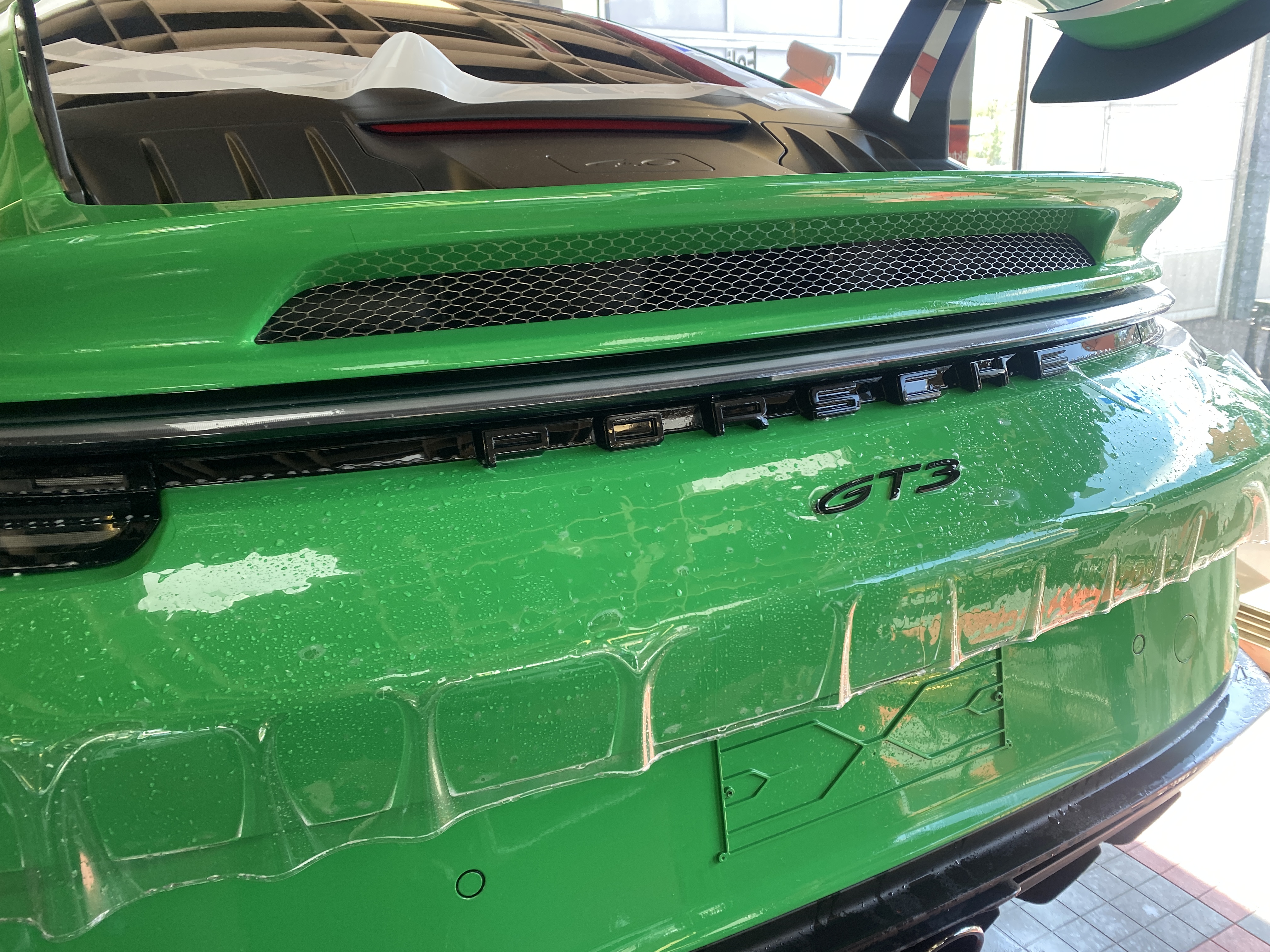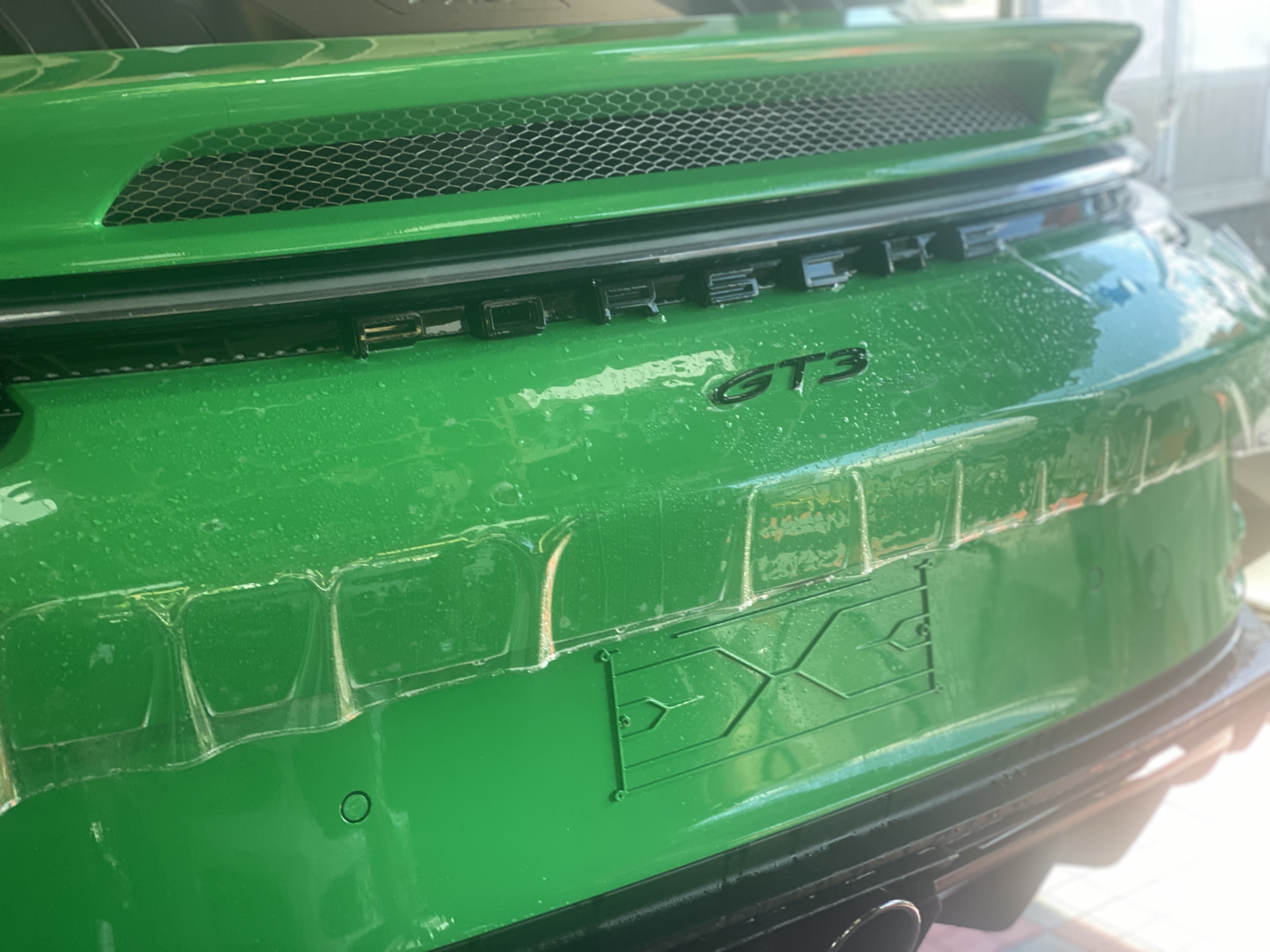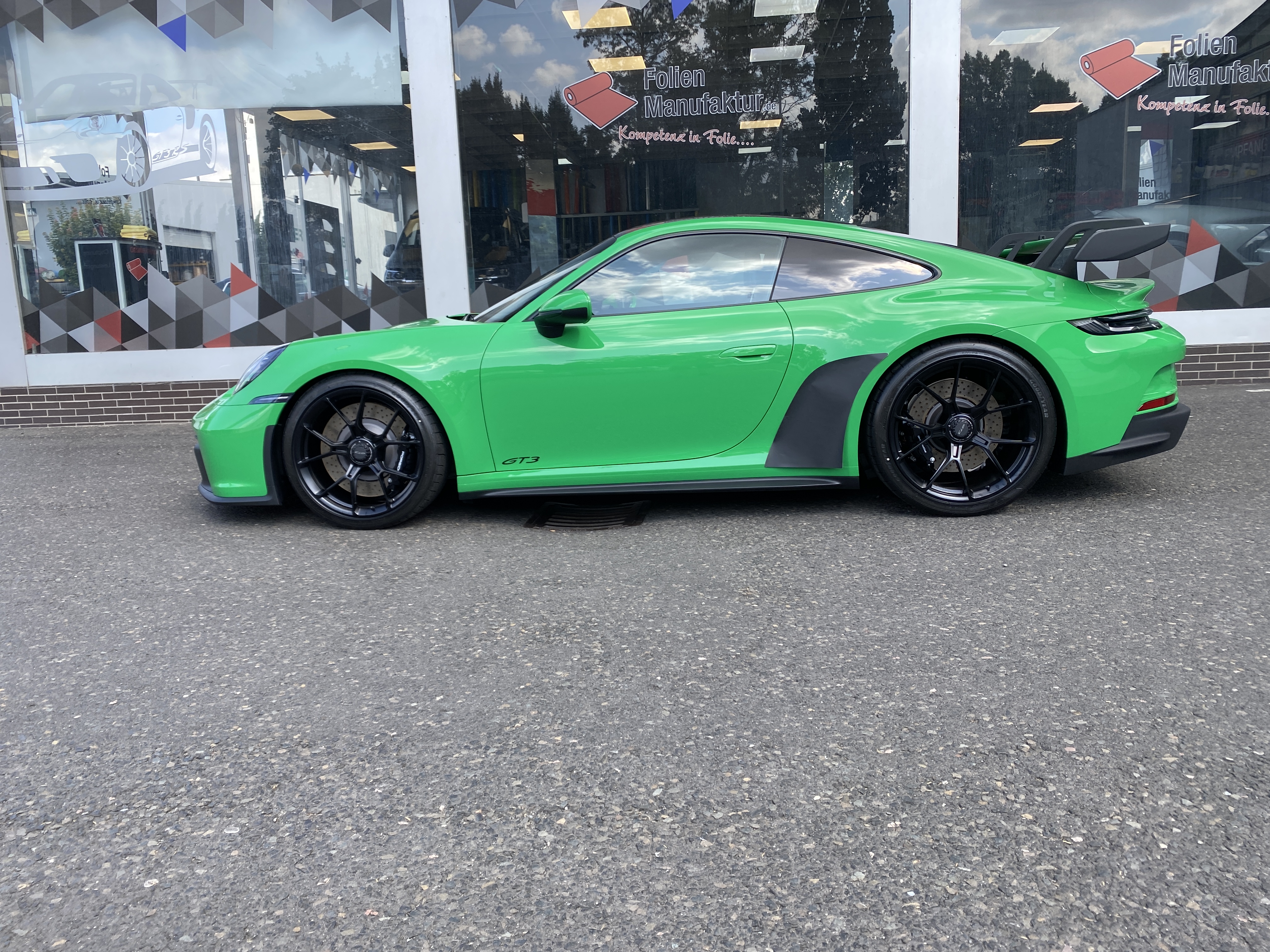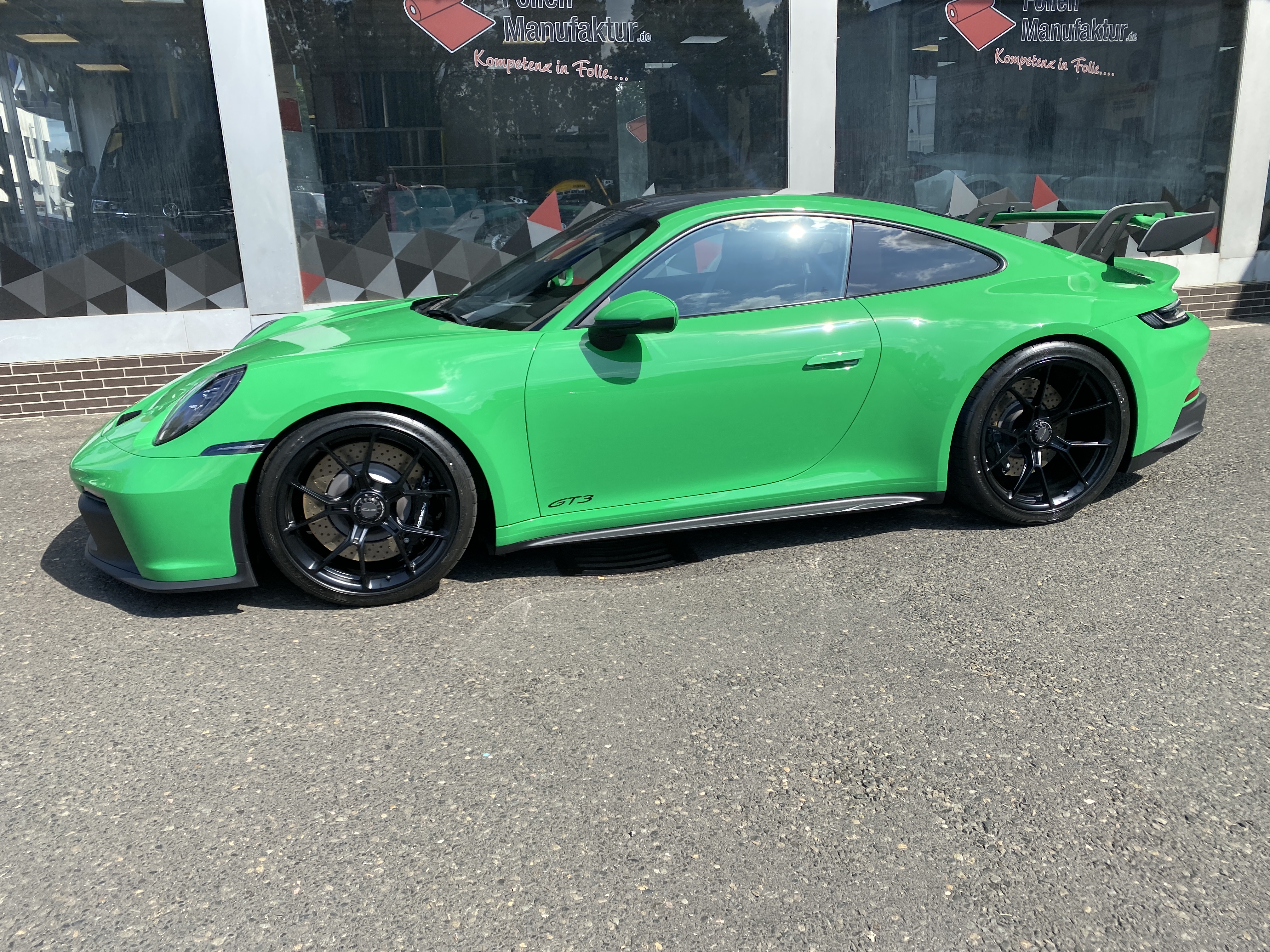 Porsche 911 992 GT3 – Lackschutzfolie in Glanz auf grünem Lack