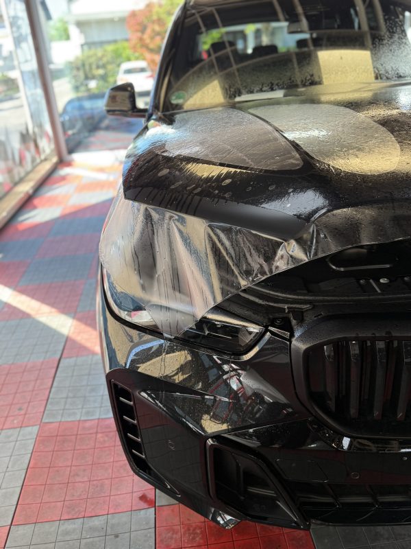Vor der Verarbeitung wurde der Lack gründlich gereinigt und oberflächenschonend vorbereitet, damit die Lackschutzfolie optimal haftet und sich sauber anlegt. Anschließend erfolgte die passgenaue Applikation der PPF auf den relevanten Karosseriebereichen mit präziser Kantenführung. Das glanz Finish sorgt dafür, dass die Schutzschicht nahezu unsichtbar wirkt und die Linien des BMW X3 M klar betont bleiben.