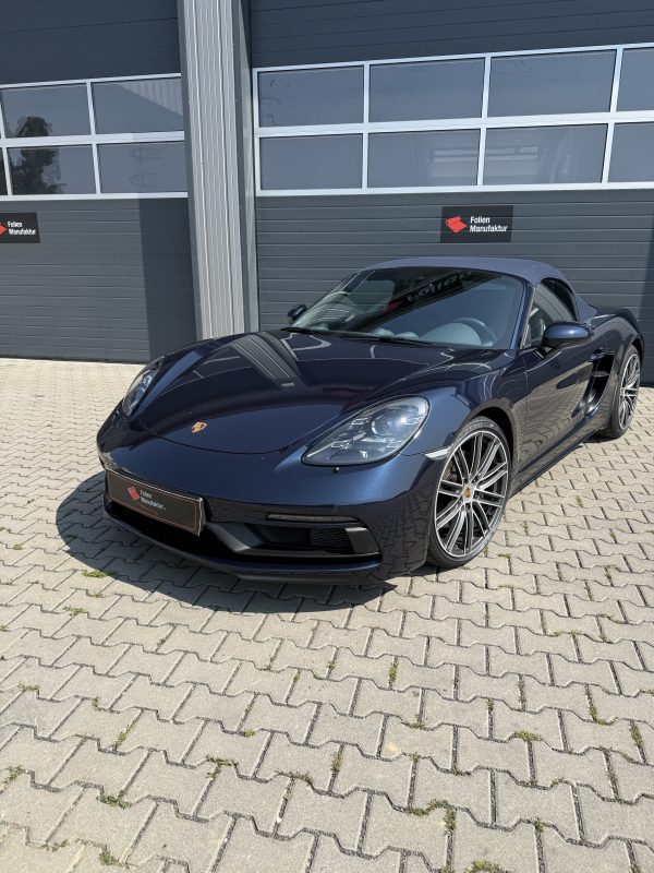Für diesen Porsche Boxster GTS stand der Erhalt des Original-Lacks im Mittelpunkt. Eine hochwertige Lackschutzfolie (PPF) schützt die besonders exponierten Bereiche vor Steinschlägen, Kratzern und Alltagsspuren. Das Ergebnis bleibt optisch dezent, bewahrt aber den wertigen Werkszustand.