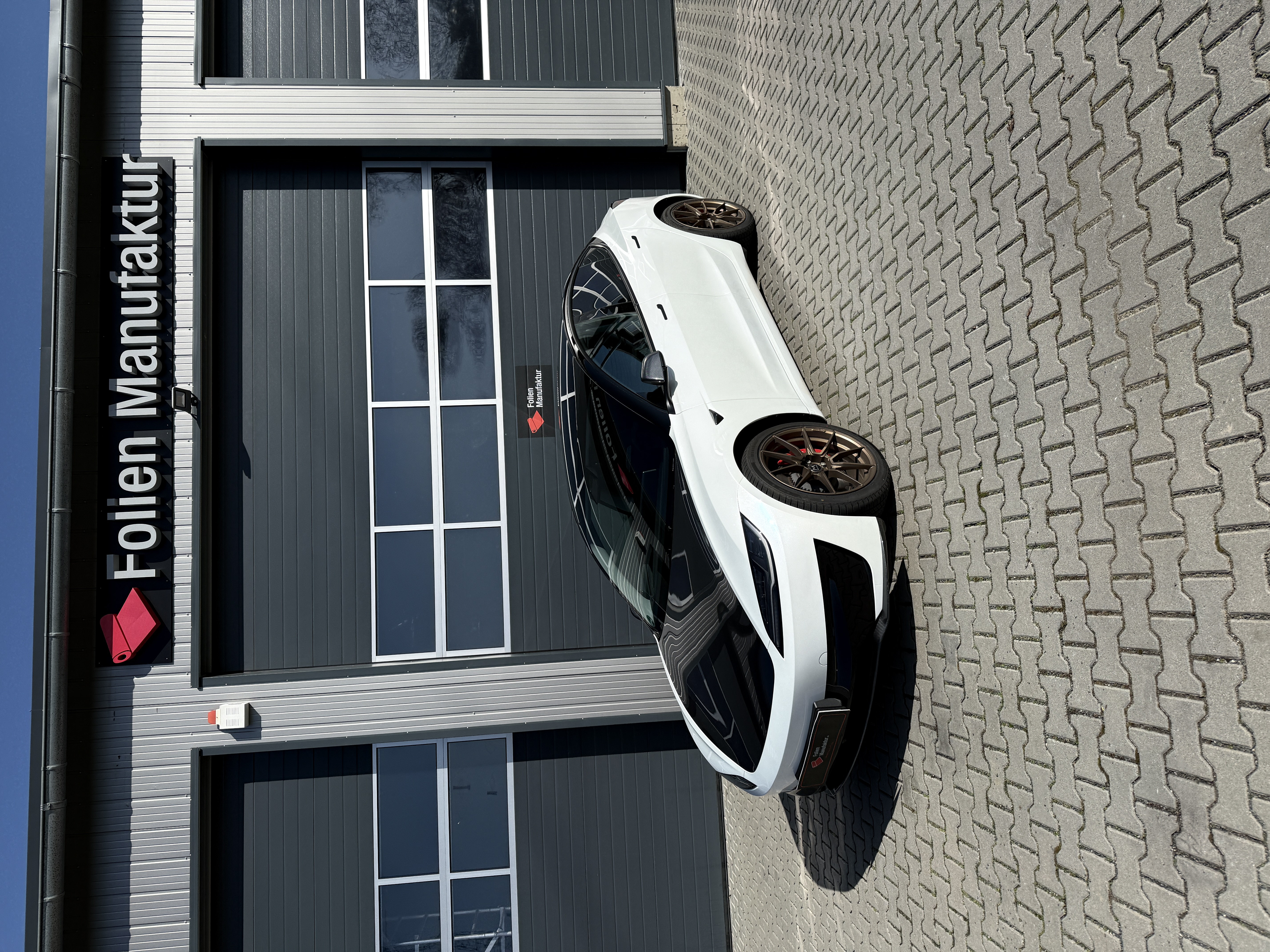 Im Fokus stand eine präzise, passgenaue Verarbeitung der Lackschutzfolie mit sauberen Kanten, harmonischen Übergängen und einem durchgängig hochwertigen Oberflächenbild. Die Karosserie wurde mit STEK Dyno Prism als PPF-Lösung foliert, um die charakteristische Prism-Optik mit echtem Schutz im Alltag zu kombinieren. Zusätzlich wurden Fronthaube, Außenspiegel und Heckdiffusor mit Carbon PPF akzentuiert – für eine technisch-sportliche Note, die perfekt zum Performance-Charakter des Fahrzeugs passt.