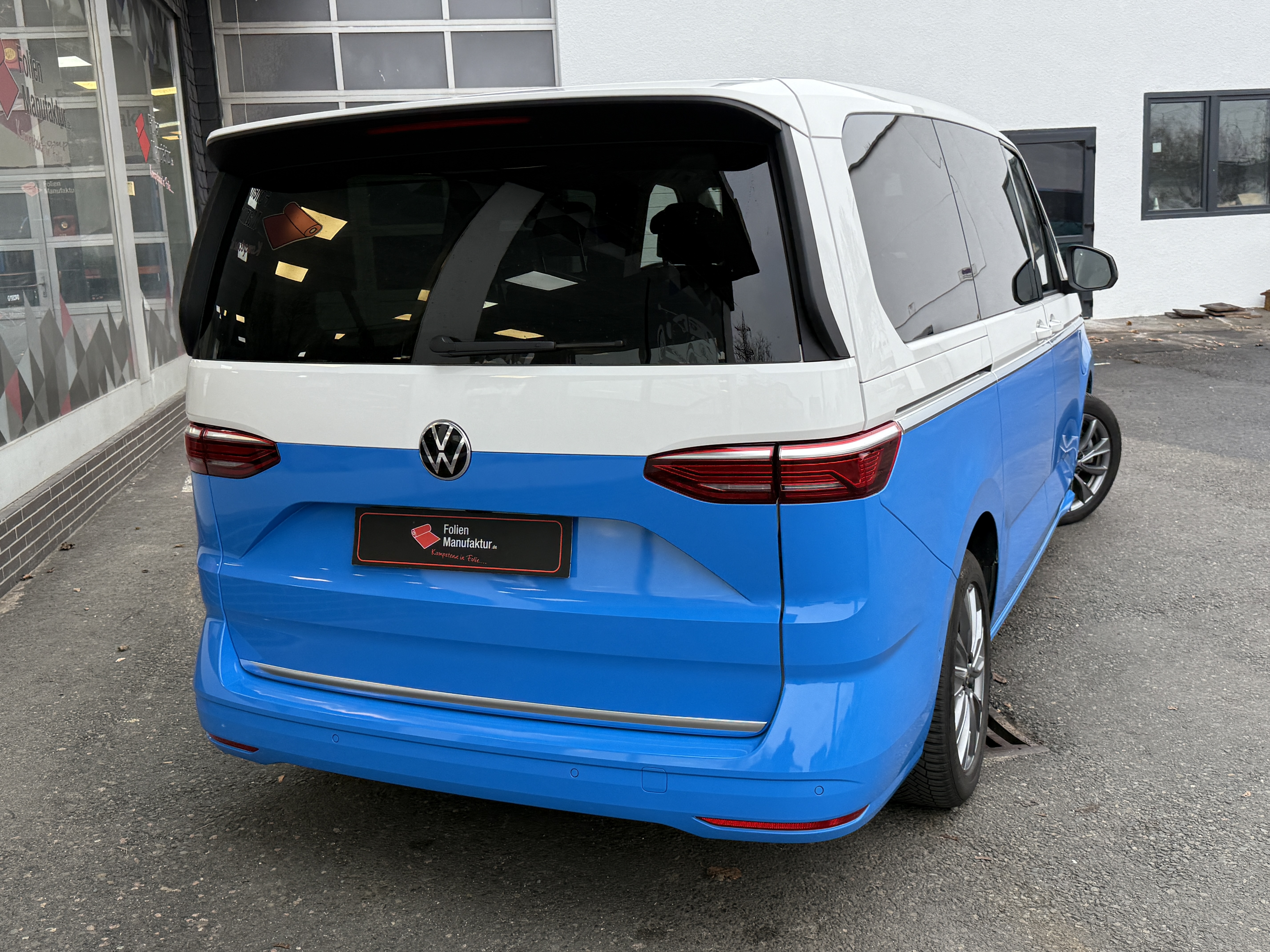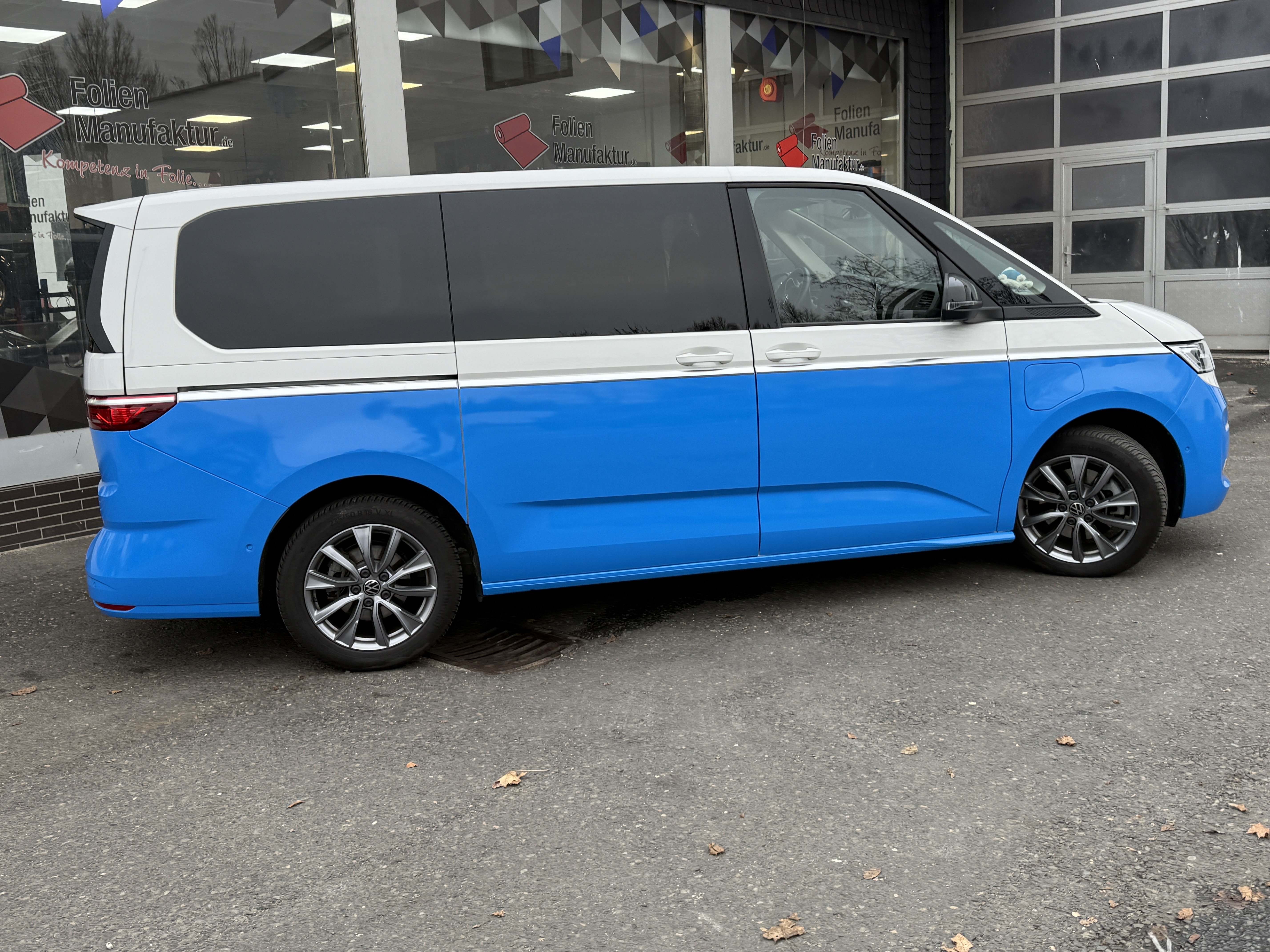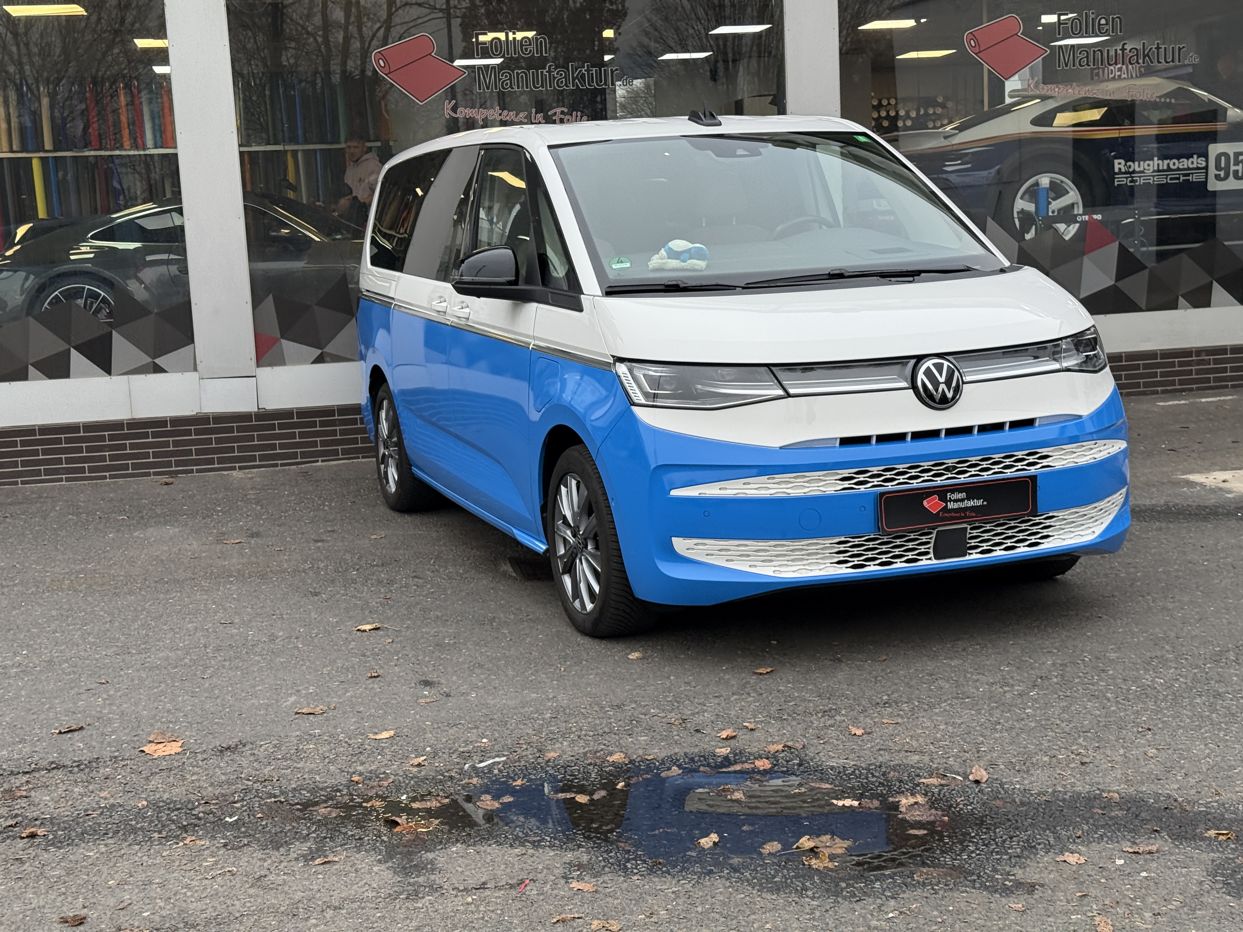 Der VW T7 zeigt jetzt, wie modern Understatement wirklich aussieht: Unterhalb in sattem Blau vollfoliert – wie ein maßgeschneiderter Akzent, der die Linien schärft und dem Bus eine sportlich-elegante Präsenz verleiht. 🖤🔥