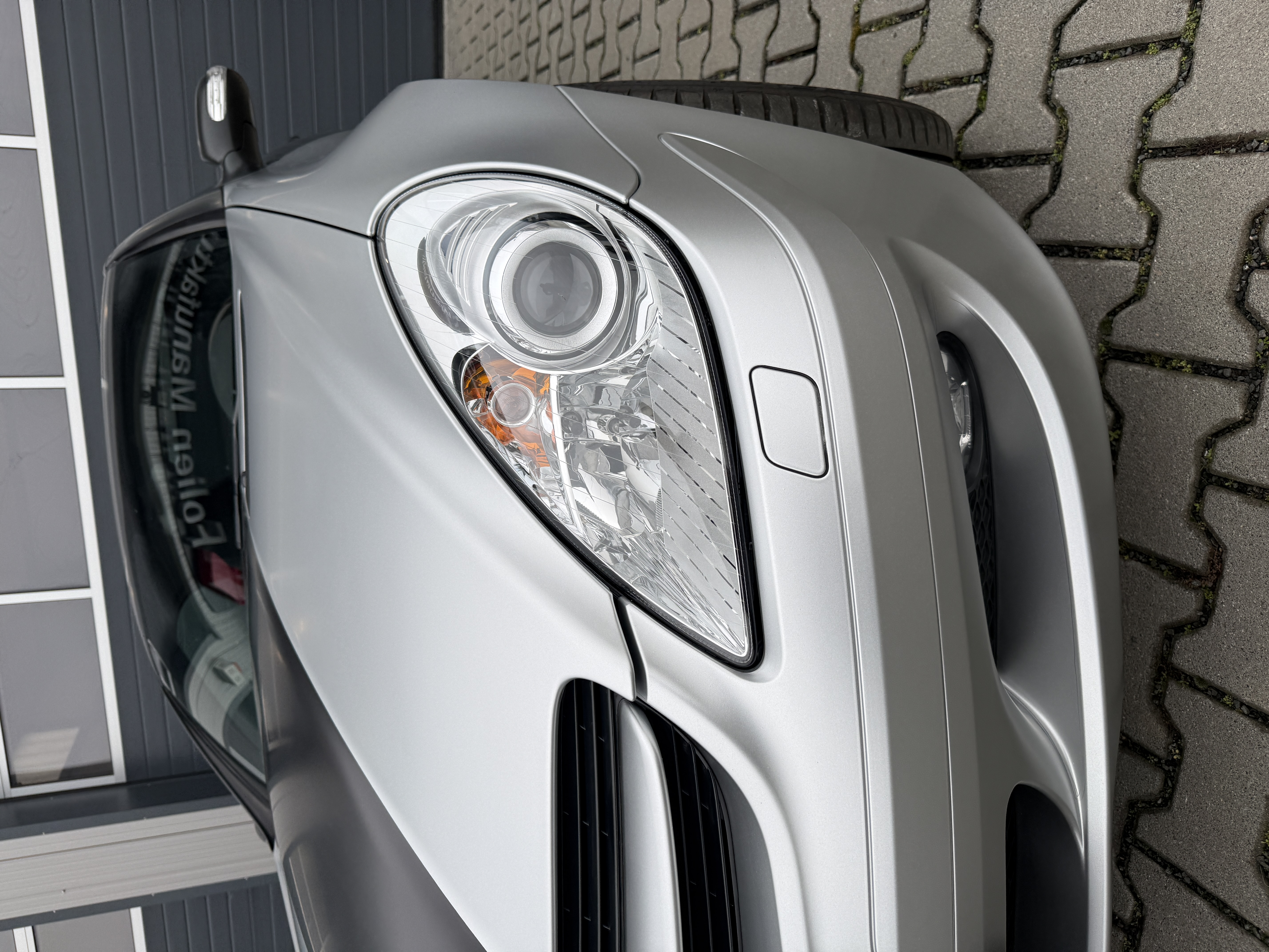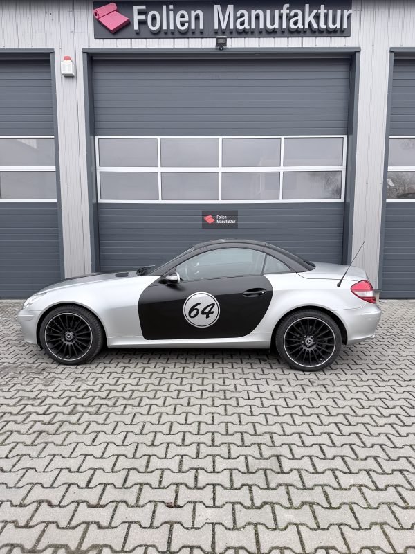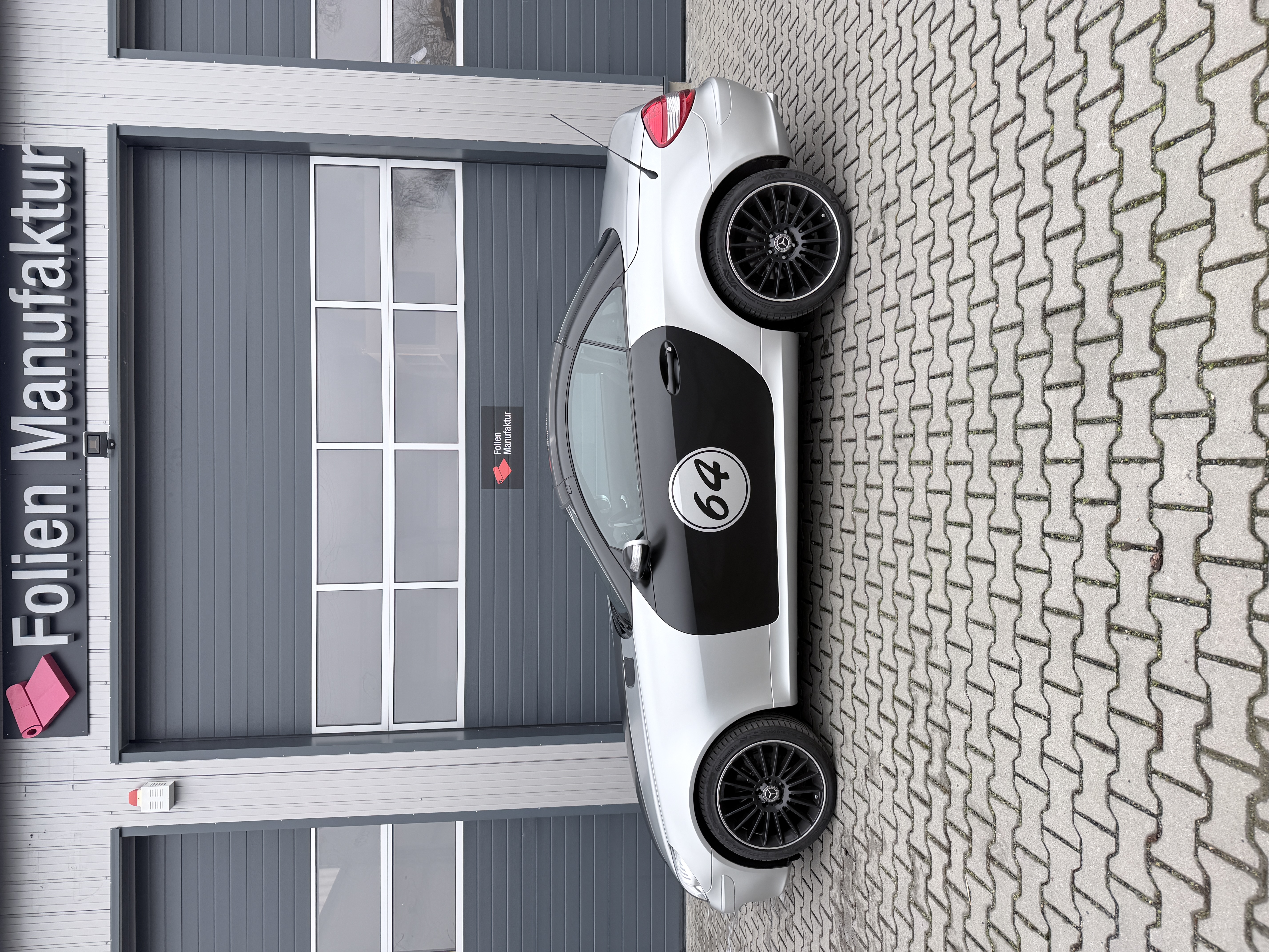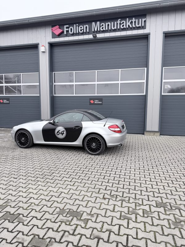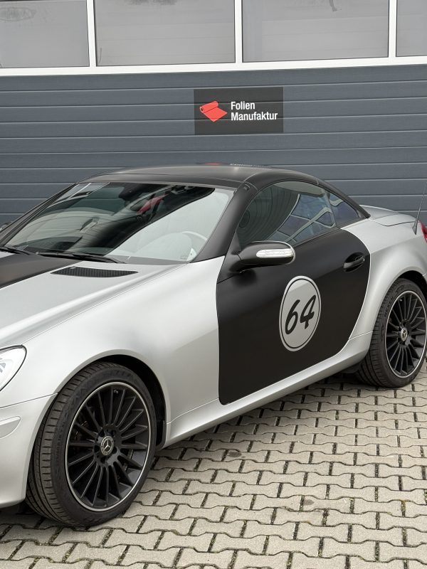 Der Mercedes-Benz SLK präsentiert sich nach der Vollfolierung in einem eleganten, seidenglänzenden Silber Matt, das sportlich wirkt und zugleich Understatement ausstrahlt. Das Finish betont die Proportionen des Fahrzeugs und sorgt für ein ruhiges, hochwertiges Gesamtbild. Die Folierung schützt den Lack im Alltag und bewahrt die Möglichkeit, später wieder auf den Originalzustand zurückzugehen.