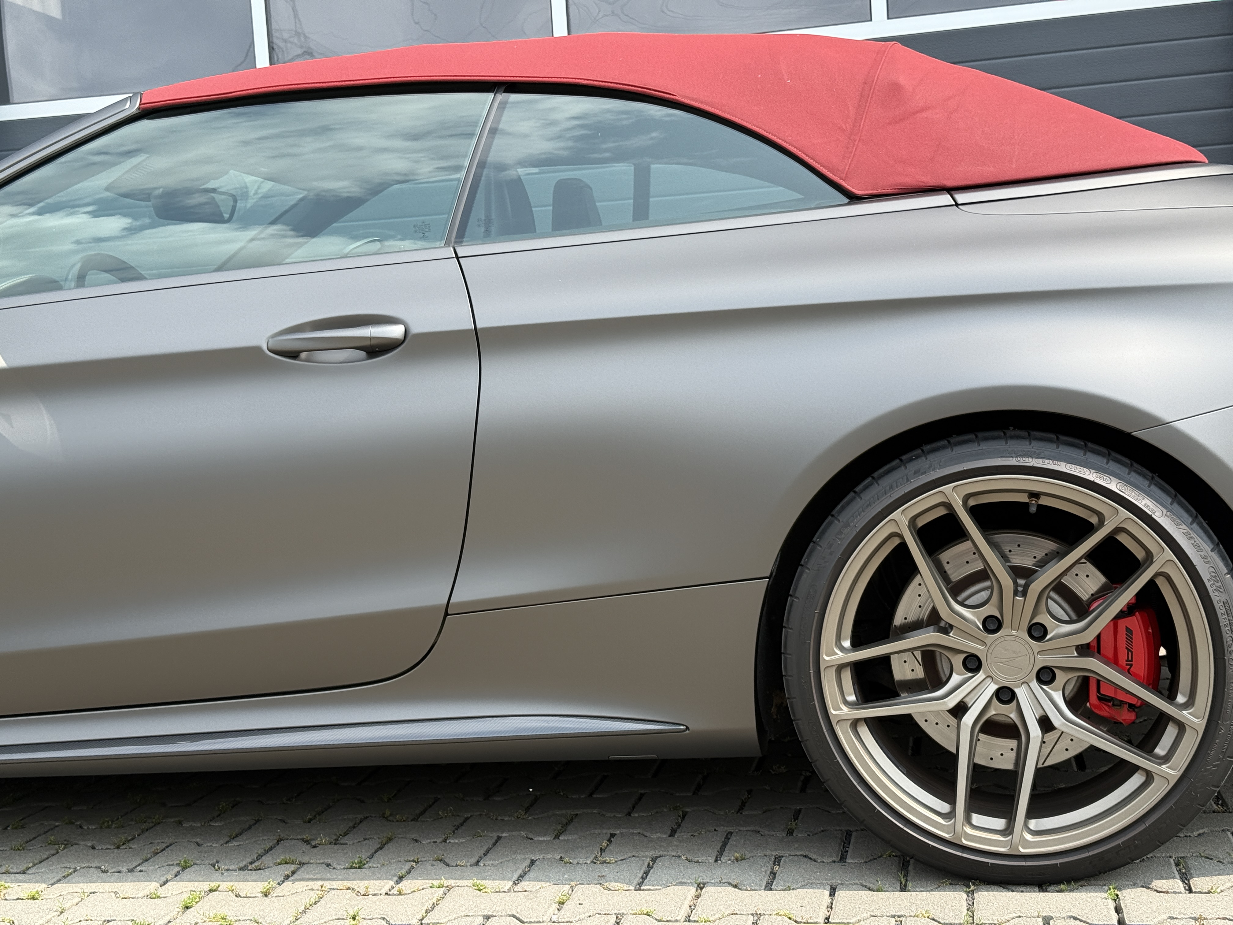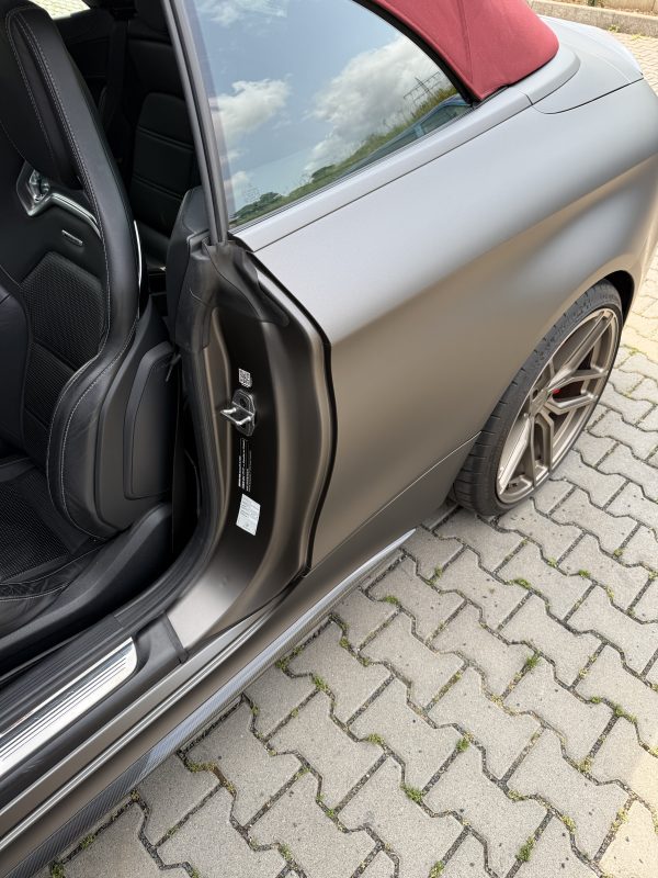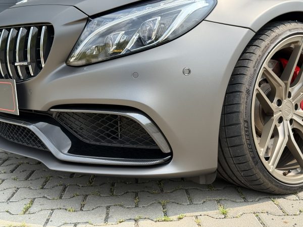 Bei dieser Mercedes-Benz C-Klasse C63 stand ein hochwertiger Schutz mit individueller Optik im Fokus. Realisiert wurde eine farbige Lackschutzfolie (PPF) im Farbton Cys, die Design und Werterhalt miteinander verbindet. Ergänzt wurde das Gesamtbild durch gezielte Akzente in Carbon PPF hochglänzend.