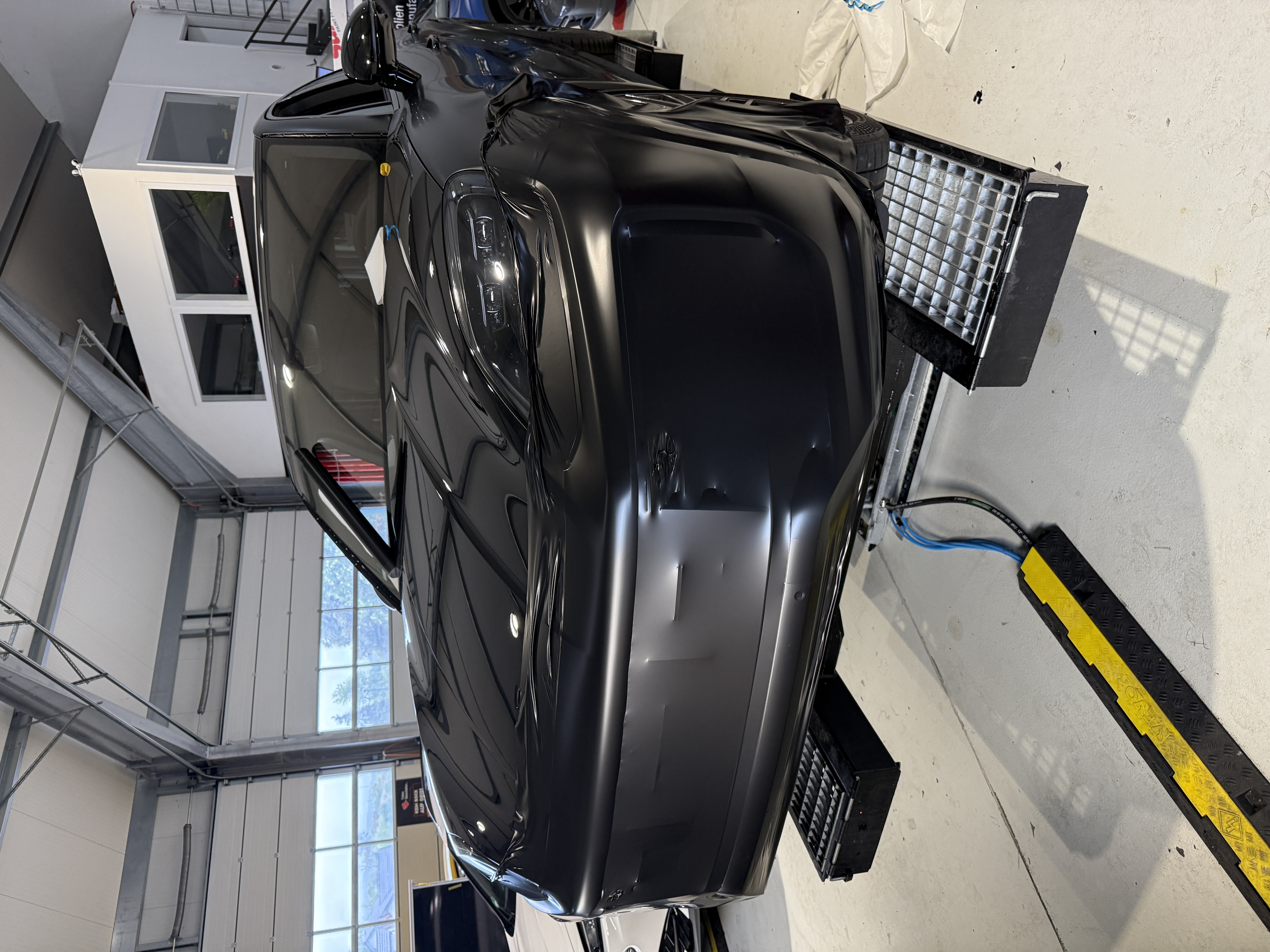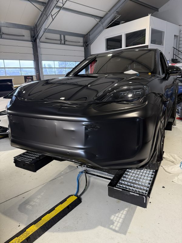 Vor der Vollfolierung wurde die Karosserie sorgfältig gereinigt und vorbereitet, damit die Folie gleichmäßig anliegt und Kanten sauber auslaufen. Anschließend erfolgte die Applikation der Oracal-Folie in Seidenglanz mit besonderem Augenmerk auf Übergänge, Sicken und komplexe Bauteile. Ziel war eine homogene Oberfläche mit präziser Ausrichtung und einem Finish, das die Konturen des Cayenne GTS betont.