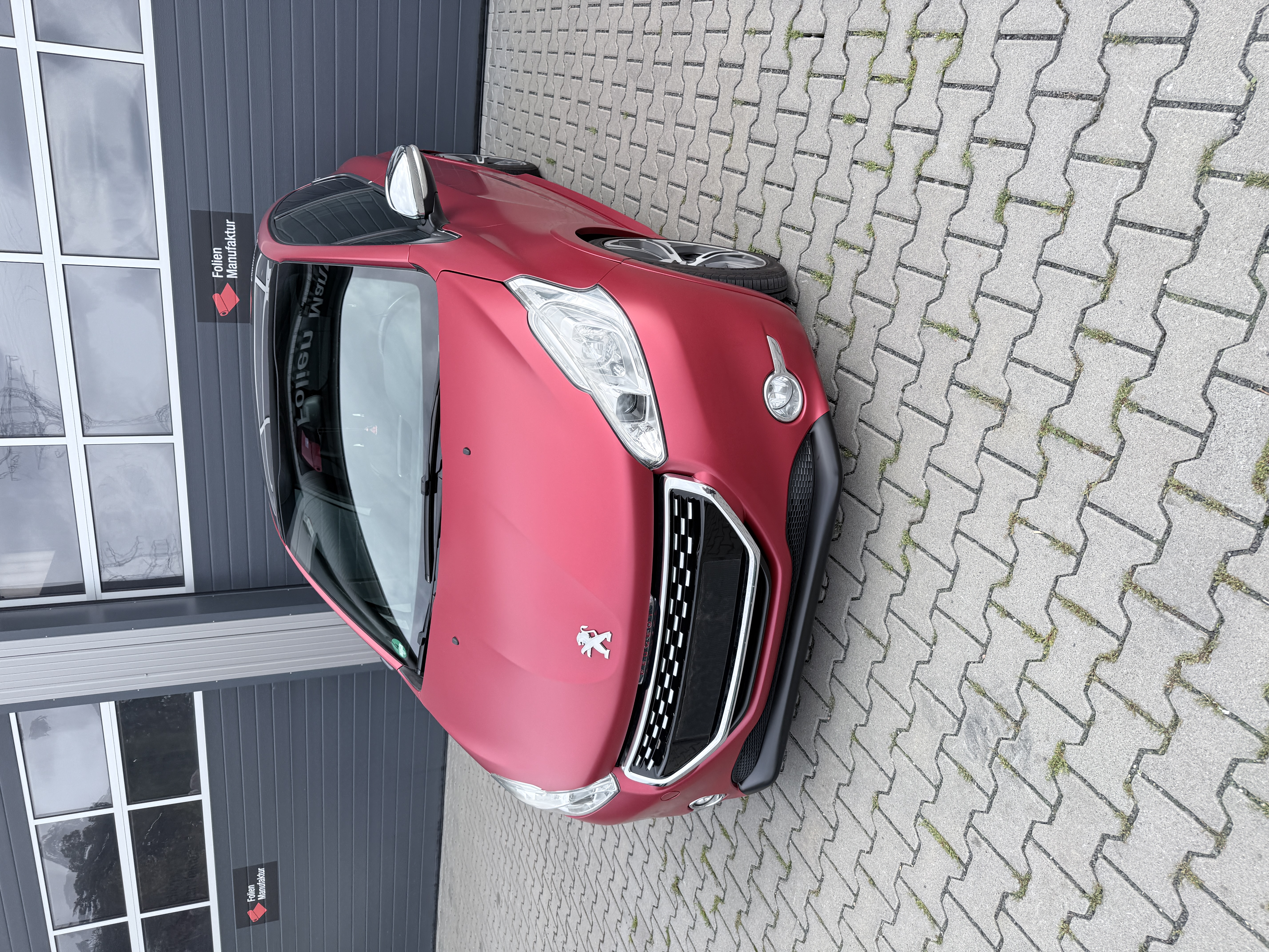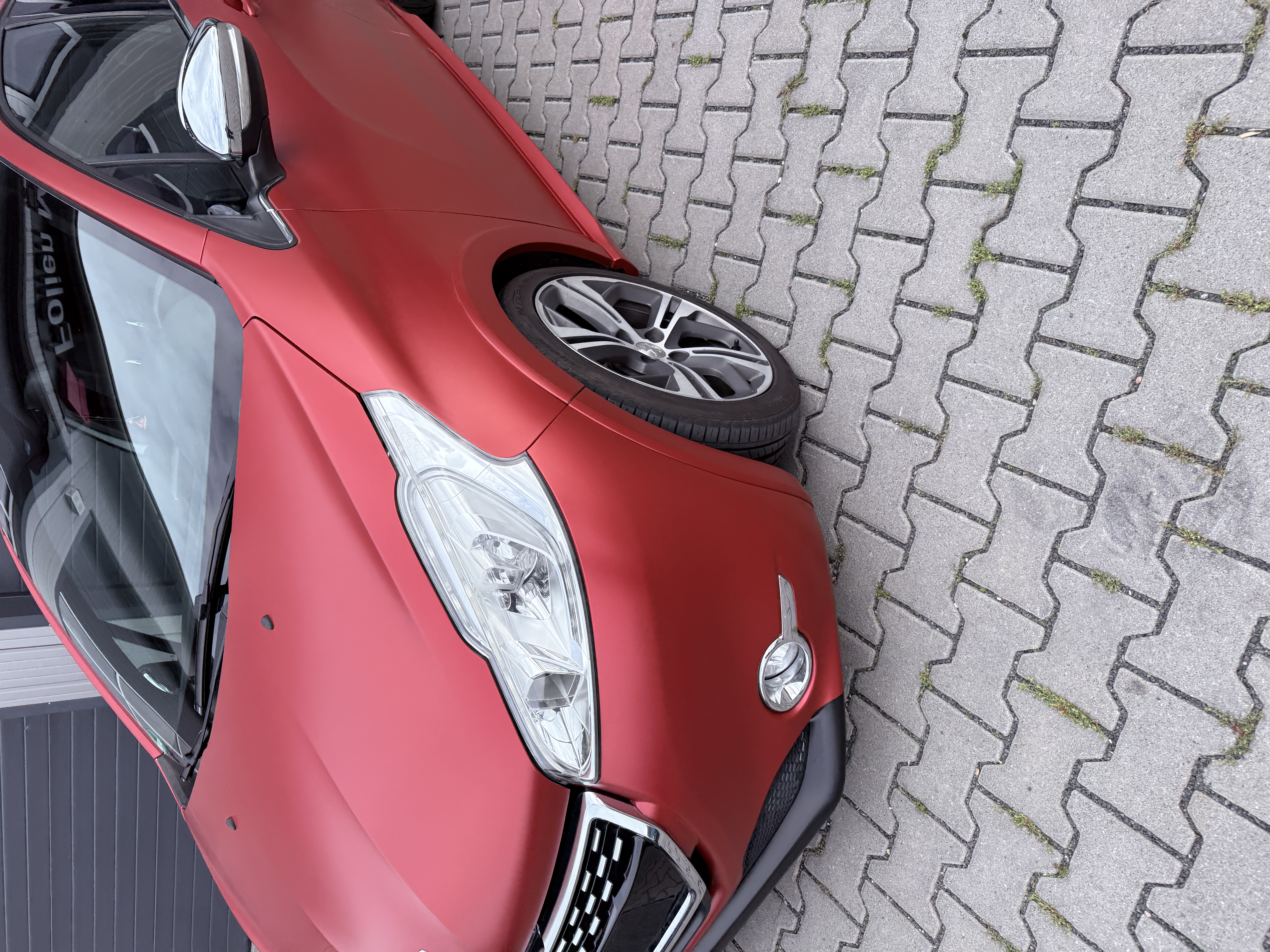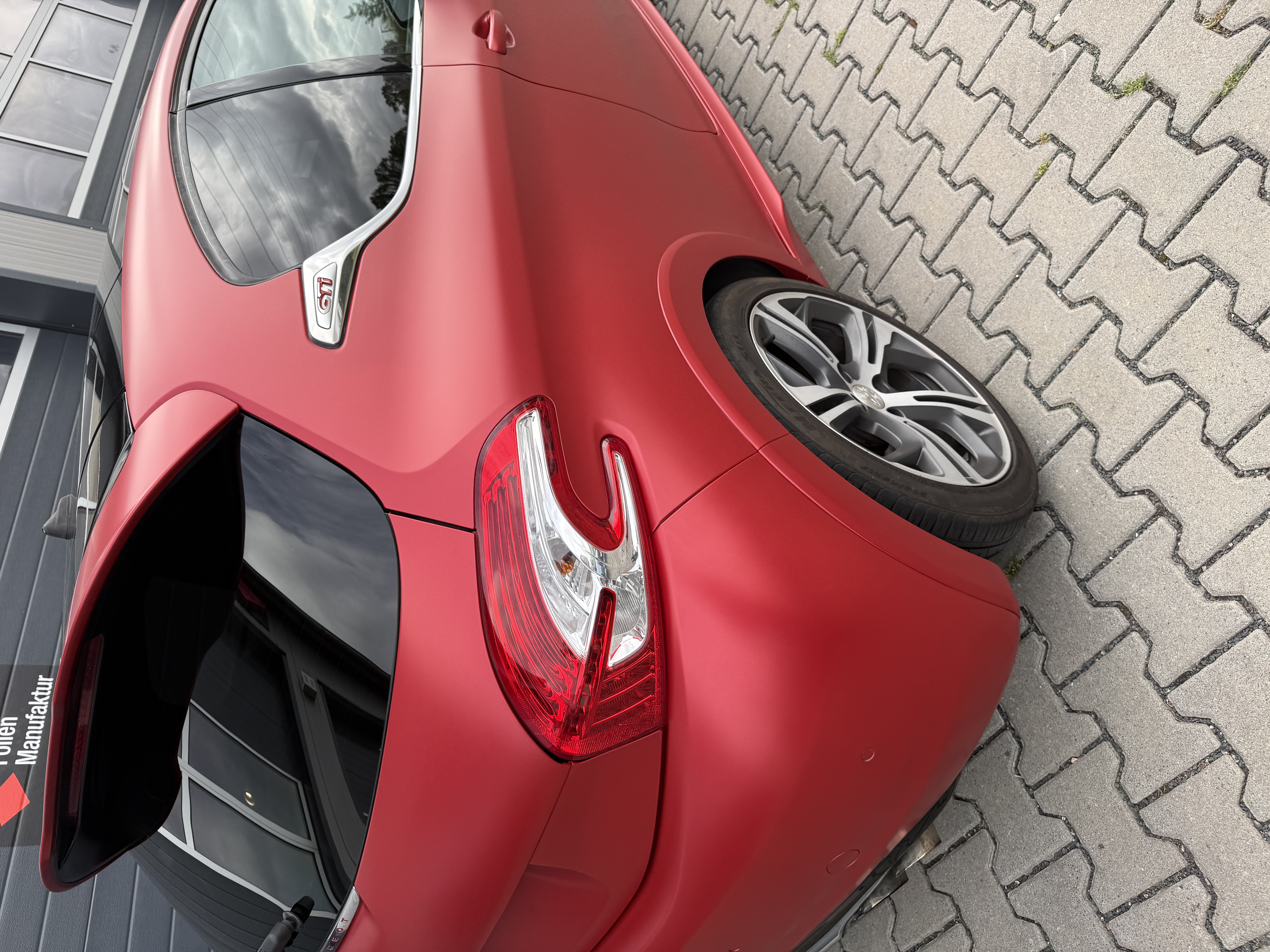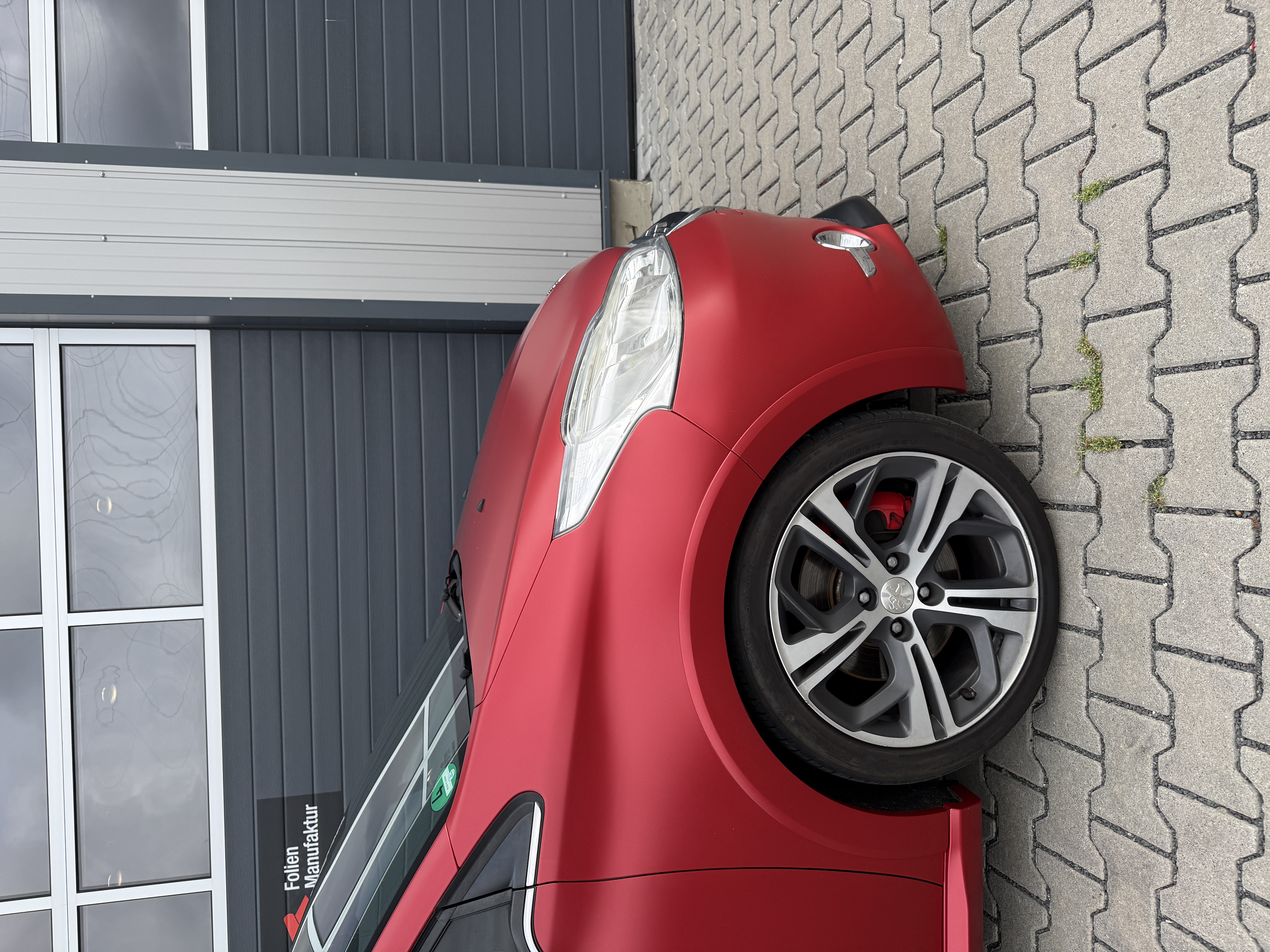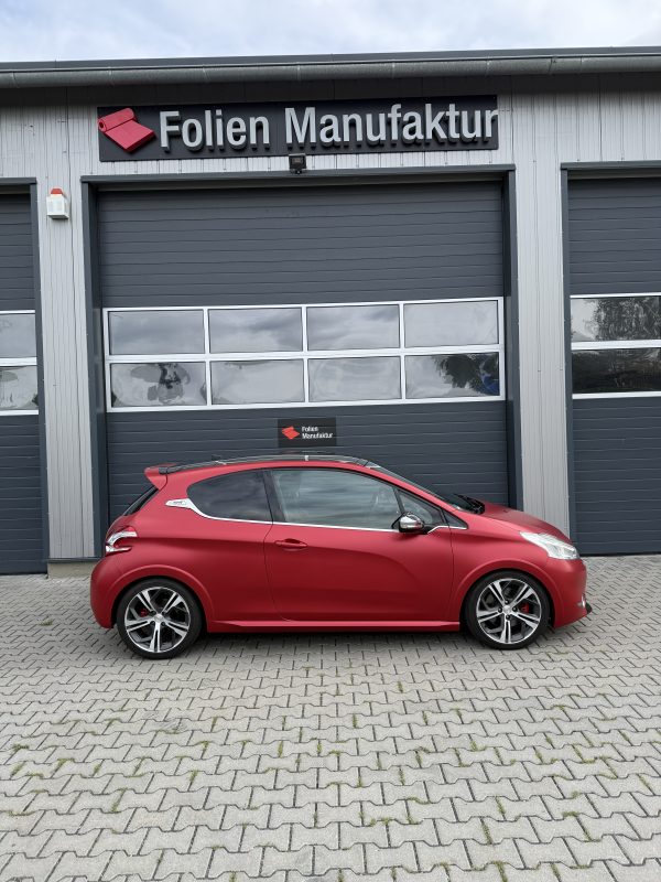 Für diesen Peugeot 208 wurde eine hochwertige Vollfolierung in einem edlen Seidenglanz-Finish umgesetzt. Die Farbe KPMF Matt Iced Red Titanium K75506 kombiniert eine markante Rotnuance mit einem modernen, metallisch wirkenden Charakter. So entsteht eine klare Designlinie, die sportlich wirkt und zugleich stilvoll bleibt.