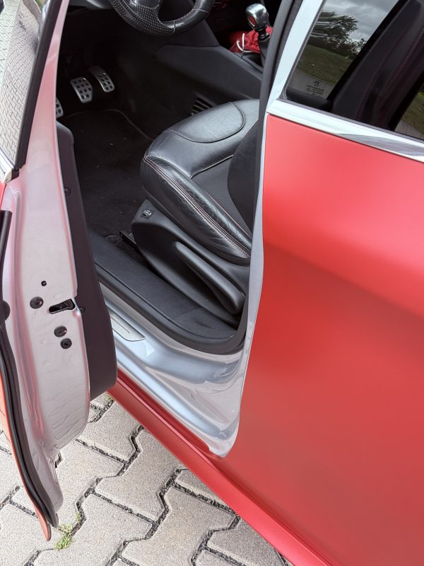 Im Rahmen der Vollfolierung wurden die Karosserieflächen sorgfältig vorbereitet, gereinigt und entfettet, um eine gleichmäßige Haftung und saubere Kanten zu gewährleisten. Anschließend erfolgte die präzise Verarbeitung der KPMF-Folie mit passgenauen Zuschnitten und sauberer Detailarbeit an Sicken, Kanten und Übergängen. Das Seidenglanz-Finish wurde dabei so ausgerichtet, dass die Flächen homogen wirken und das Farbspiel des Materials optimal zur Geltung kommt.