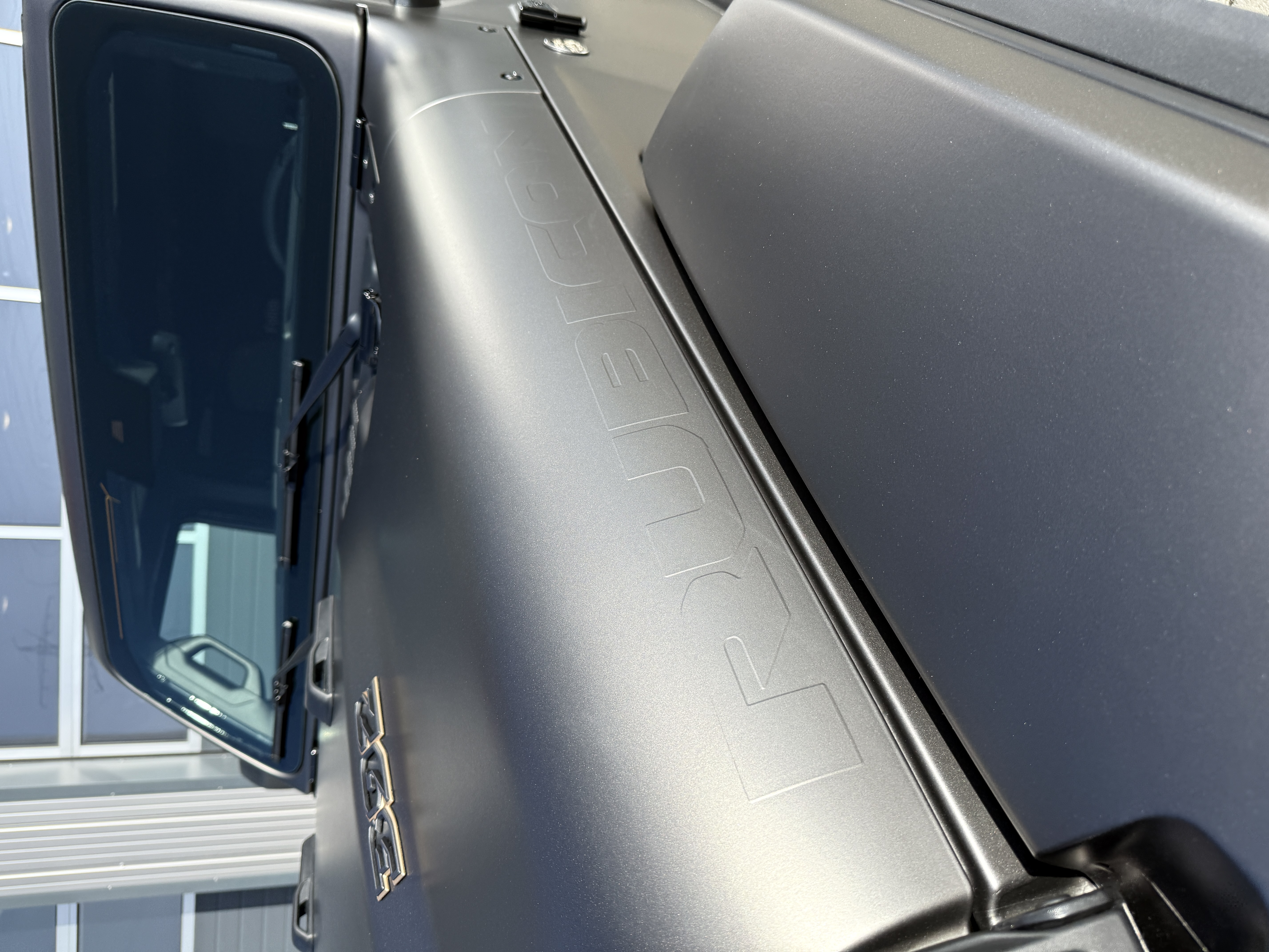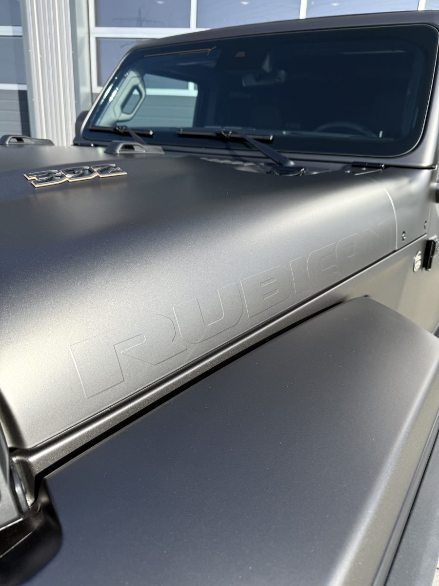**Vollfolierung auf Premium-Niveau – inklusive Einstiegsbereiche.** Für ein Finish, das nicht nur gut aussieht, sondern sich auch genauso anfühlt: präzise Kanten, saubere Übergänge, stimmige Flächenwirkung. Der Seidenglanz bringt Tiefe ins Metallic und macht den Wrangler zur Statement-Maschine – auf der Straße wie im Gelände. 🚀