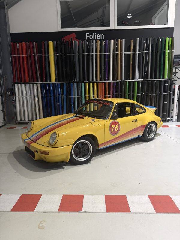 Dieser klassische Porsche 911 G-Modell wurde von uns in einem aufwendig gestalteten Retro-Design foliert. Mit viel Liebe zum Detail haben wir den ikonischen Look vergangener Motorsport-Ären neu interpretiert und dem Klassiker eine ganz besondere Präsenz verliehen.