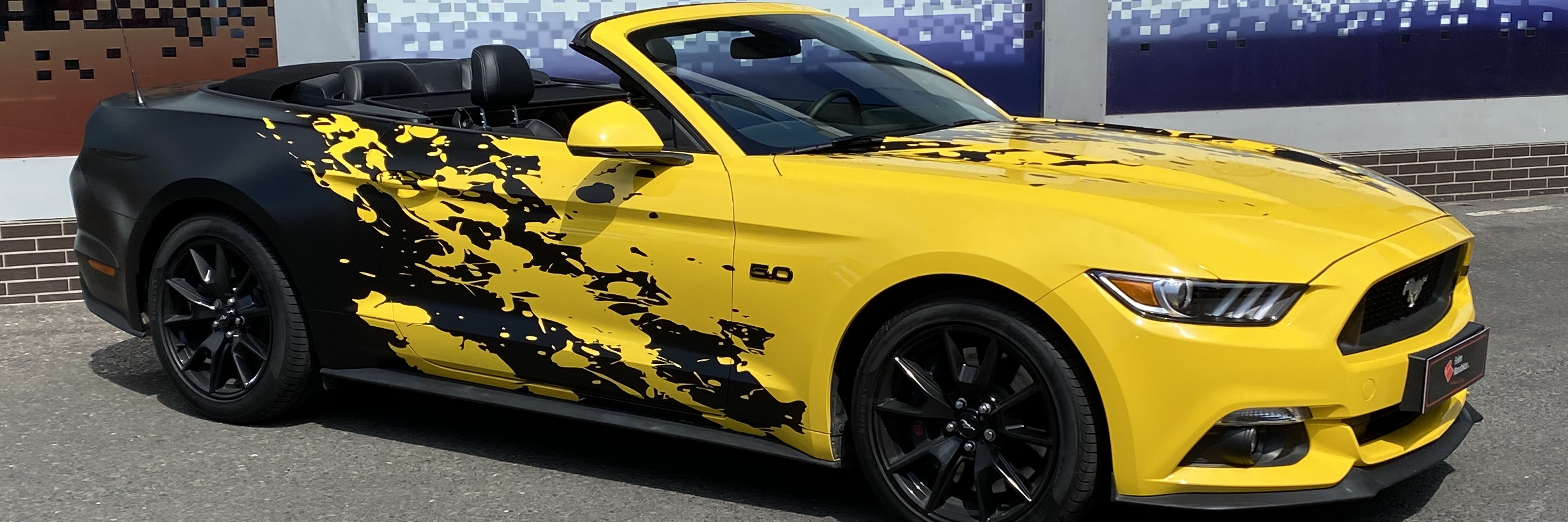 beispielsweise Rennstreifen oder ein ausgefallenes Motiv auf der Motorhaube. Auch als Fahrzeugbeschriftung für temporäre Marketingkampagnen eignet sich die Teilfolierung, um die Botschaft zu transportieren.